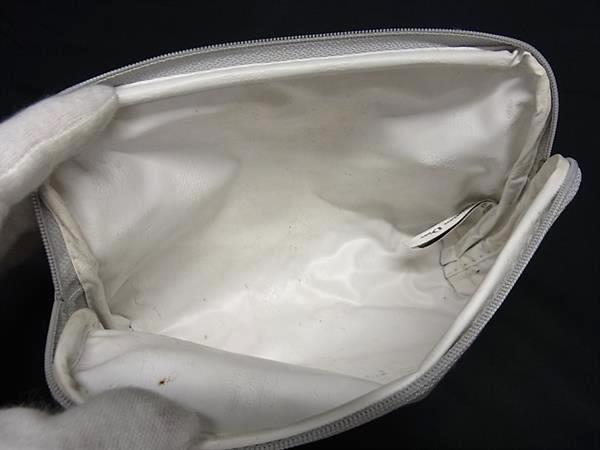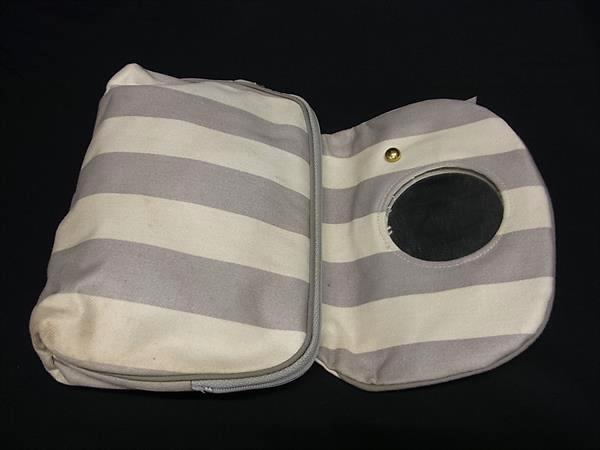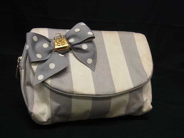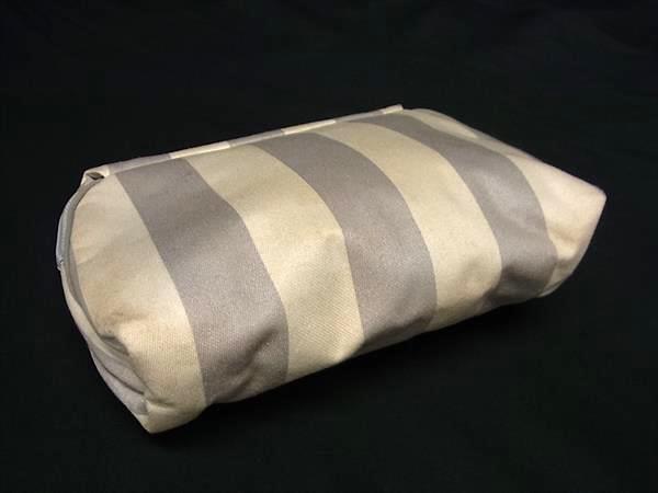 ChristianDior クリスチャンディオール キャンバス ストライプ リボン ミラー付き メイクポーチ グレー系×アイボリー系 DI2502