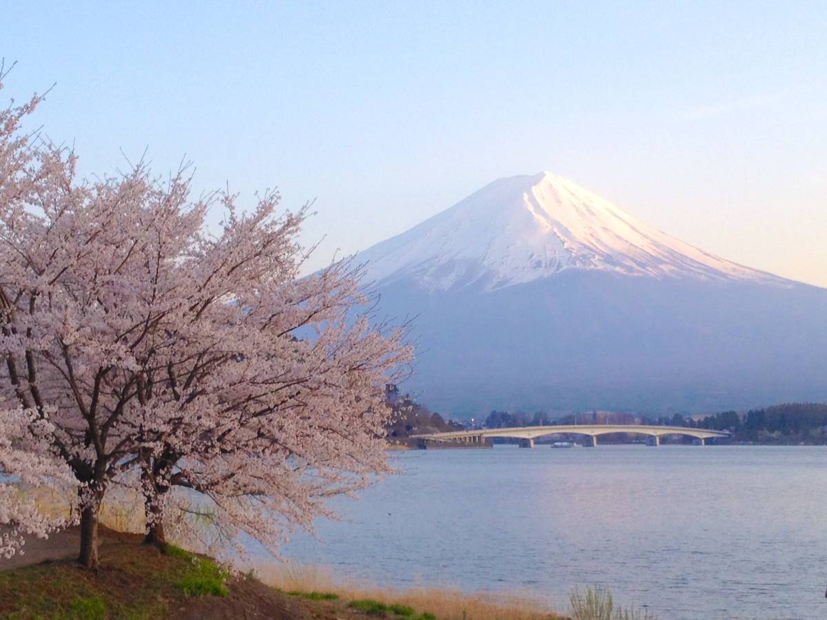 世界遺産「富士山」山梨県側河口湖よりさくらと富士山です。