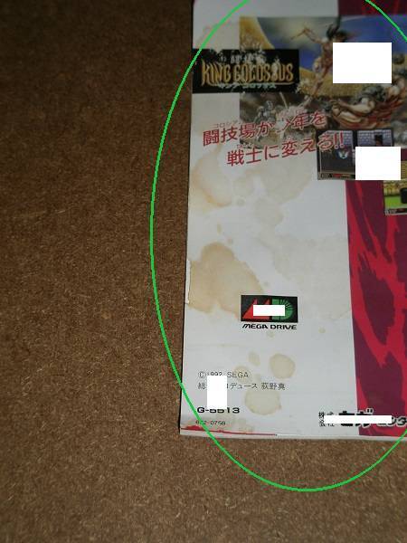 緑の丸のところ傷、汚れ、折れ、縒れ、紙欠け、縁角傷みなど