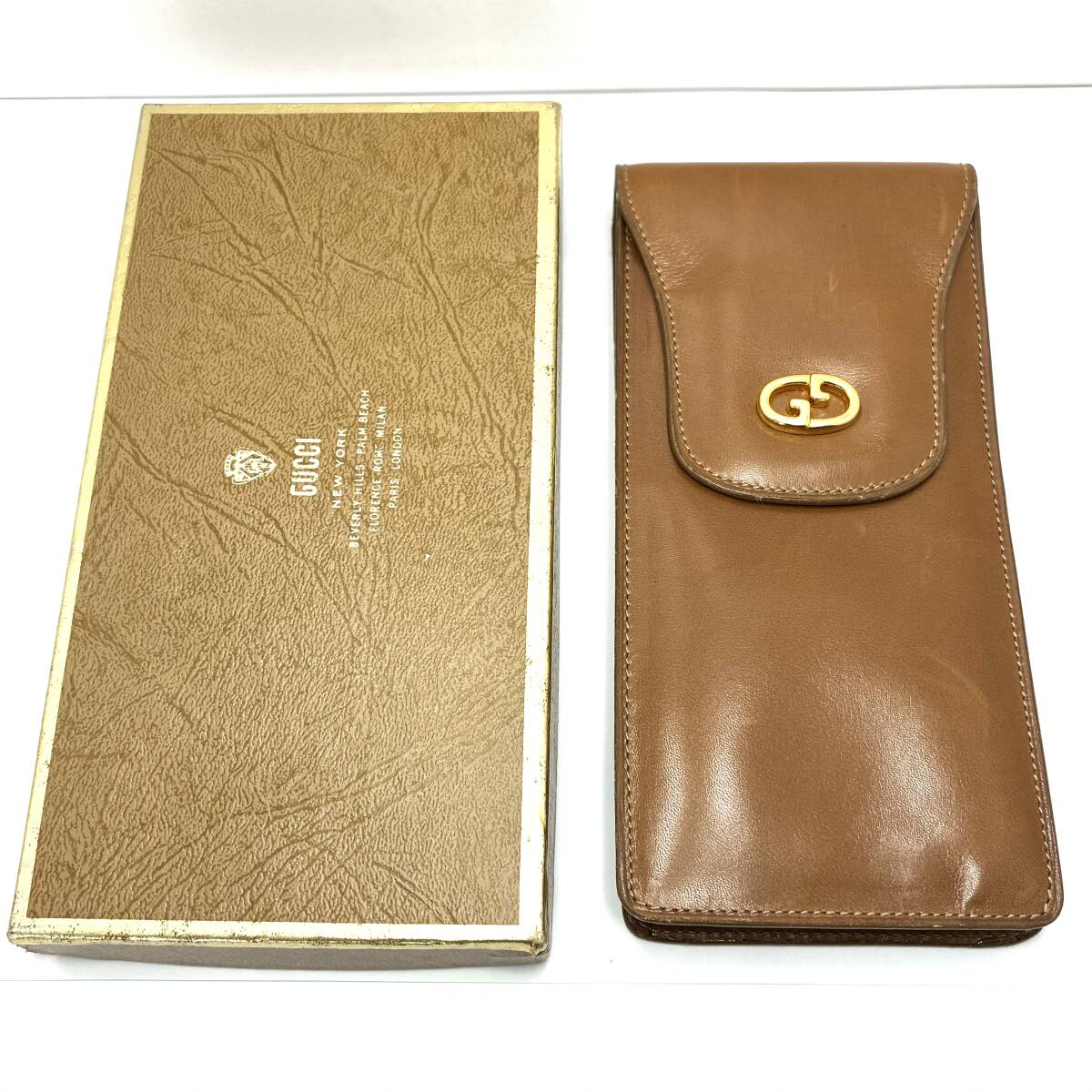 GUCCI グッチ オールドグッチ ペンケース レザー ブラウン ヴィンテージ 男女兼用 メンズ レディース 箱付き