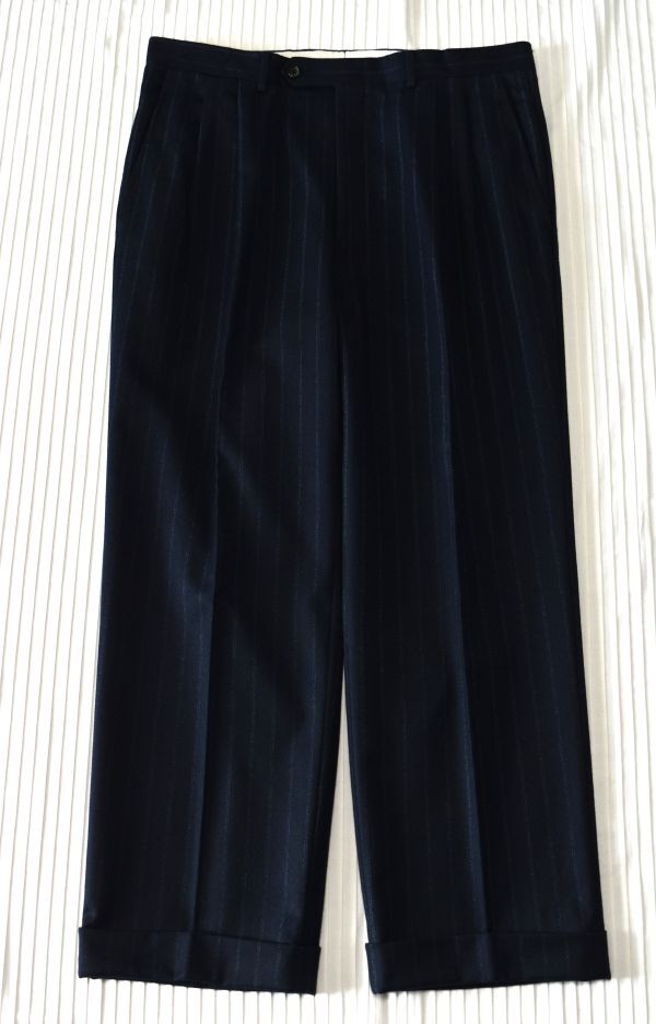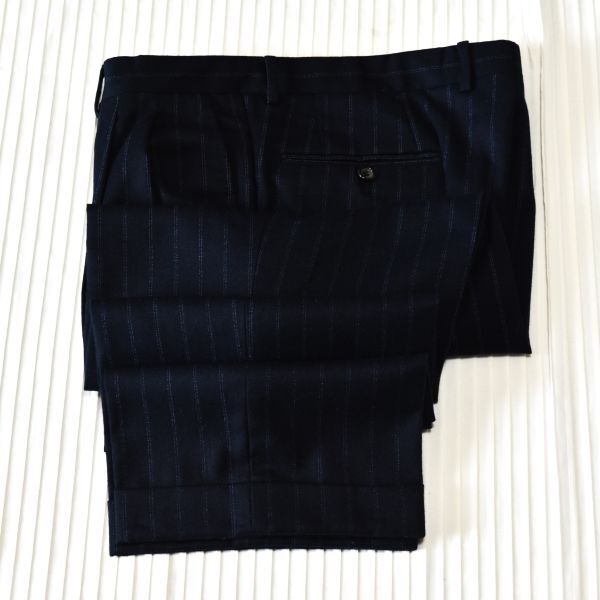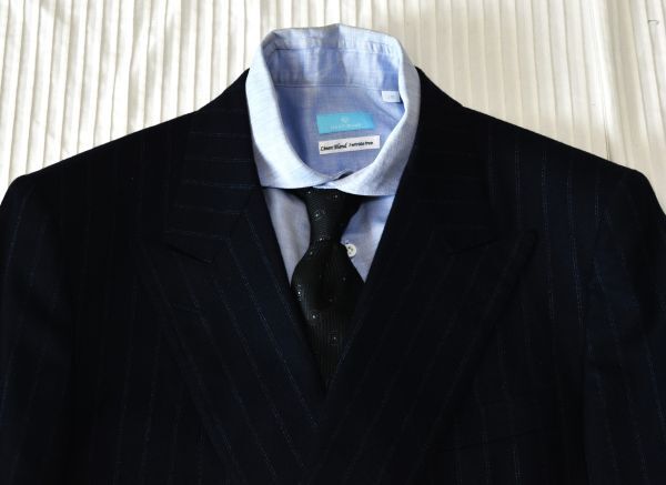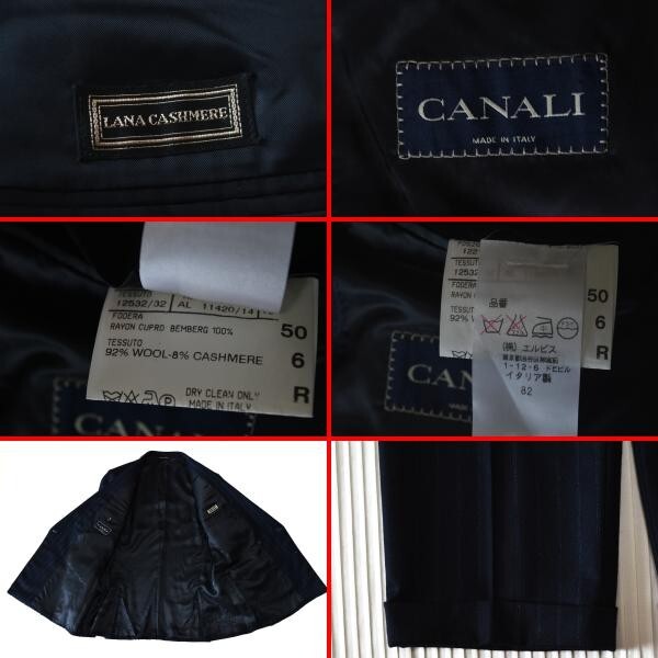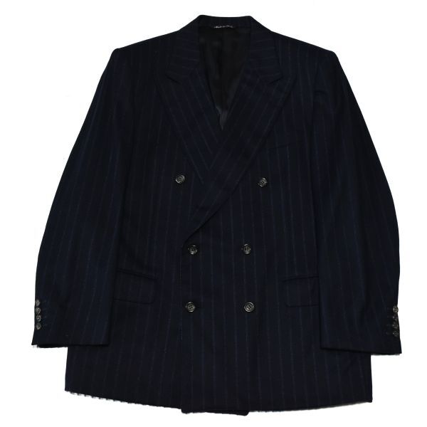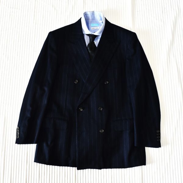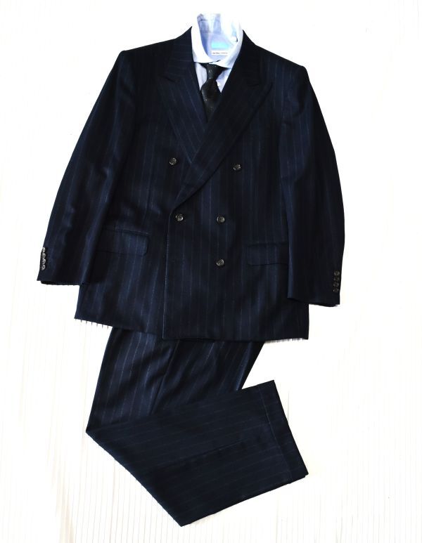★定価25万★CANALI★カナーリ★イタリー製★気品が漂うネイビー幅広ストライプ#毛カシミヤの上質な生地★最高級のダブルのスーツ50/L