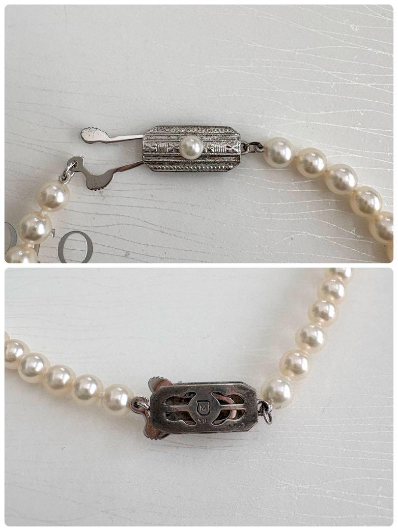 クラスプに経年のくすみが見られますが、真珠自体特に気になるダメージや汚れなどのない状態の良い中古品です。