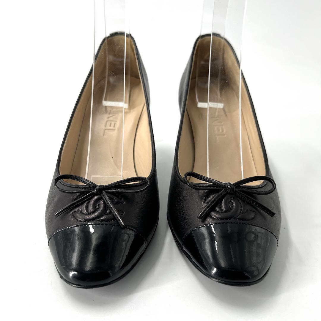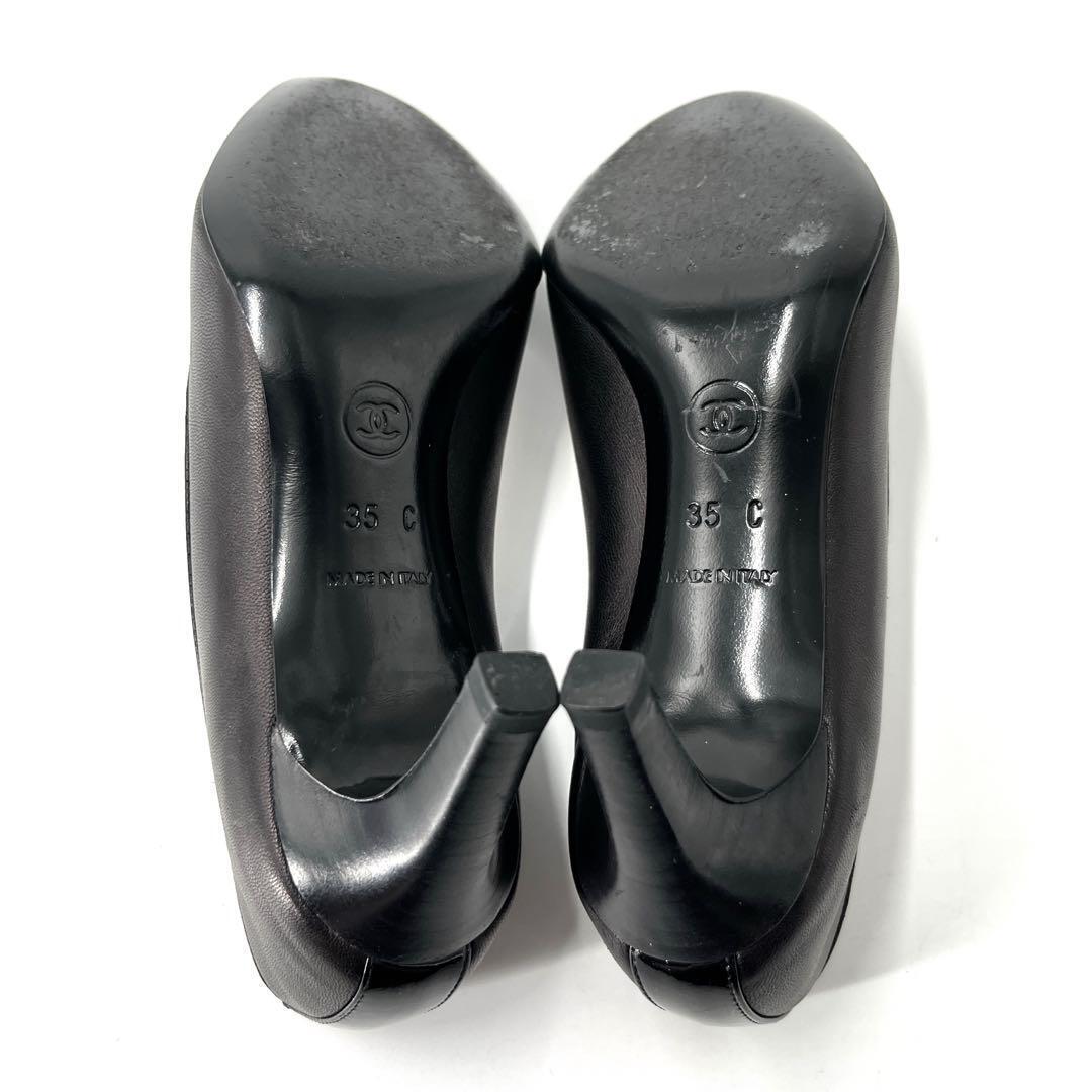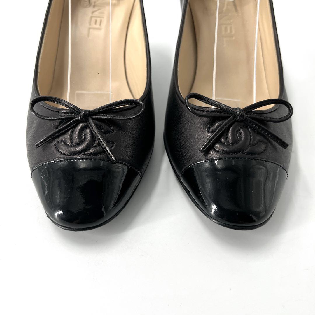 CHANEL ブラック エナメルレザー パテントレザー ロゴ型押し 型押しロゴ