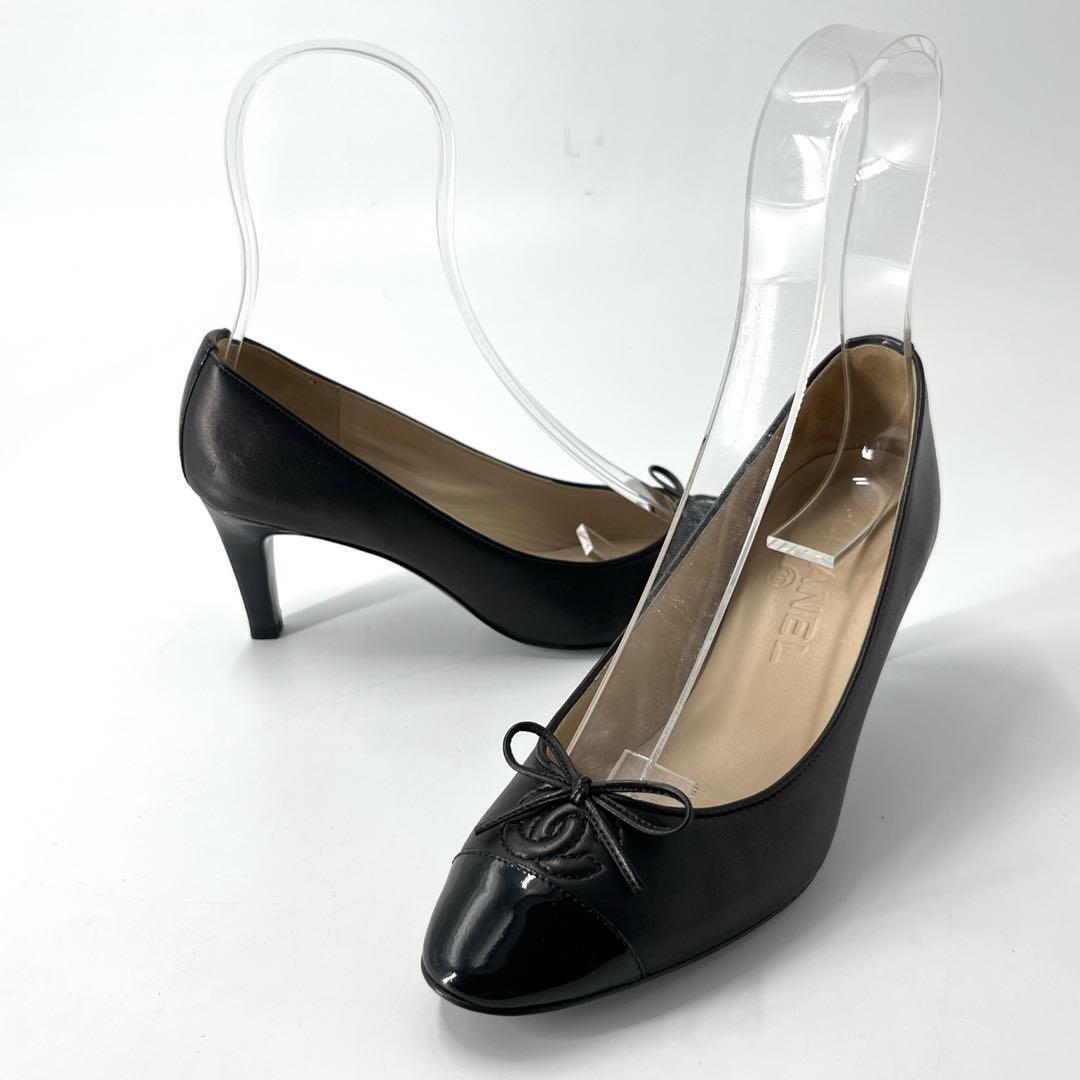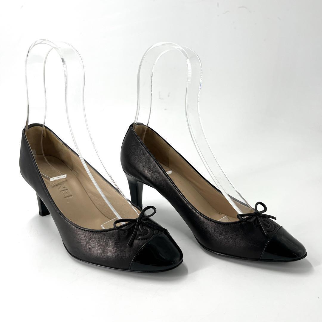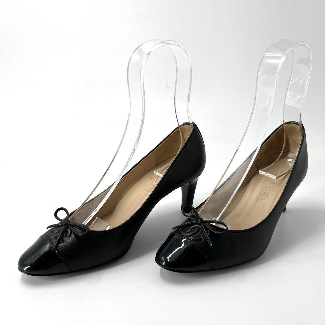 CHANEL ブラック エナメルレザー パテントレザー ロゴ型押し 型押しロゴ