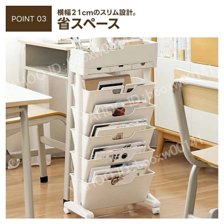 マガジンラック キャスター付 オープンラック 書類収納ラック ファイルワゴン ロック機能付き ブックスタンドラック アイボリー hhw0043.1