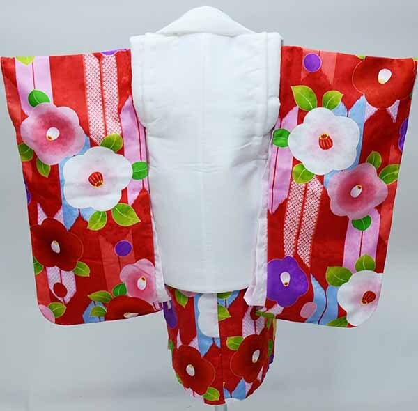 | 項目 | 三歳被布着物フルセット ・着物 ・長襦袢 ・被布コート ・巾着 ・髪飾り ・半襟(襦袢に縫い付け済み) ・伊達衿(着物に縫い付い済み) ・草履 ・かかと止めバンド ・付け紐2本(着物縫付済) ・着付け説明のご案内(ご要望のお客様のみ、詳しくは以下明記しております) 以上フルセット |