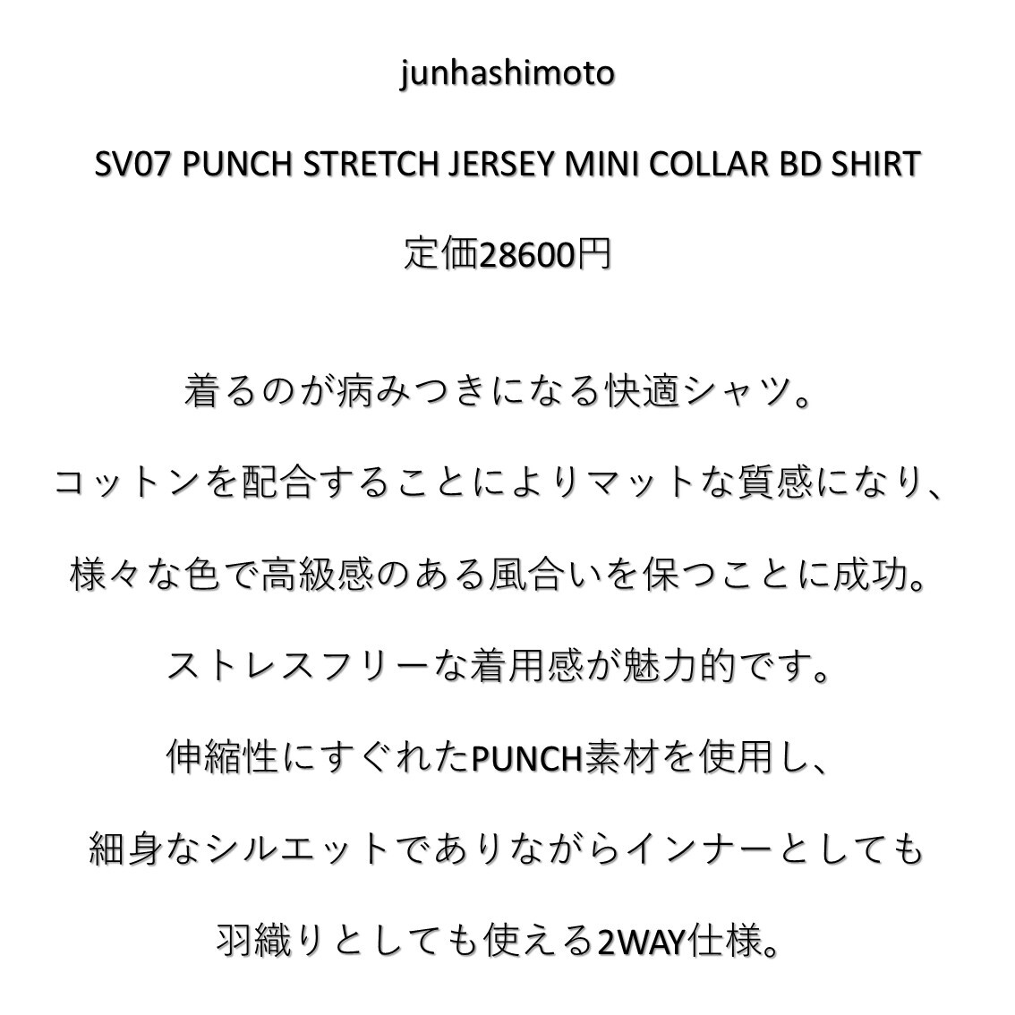 junhashimoto SV07 PUNCH STRETCH JERSEY MINI COLLAR BD SHIRT