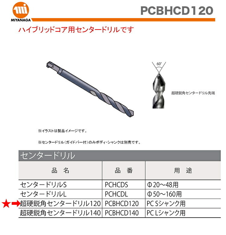 【新品】【数量限定】 ミヤナガ ハイブリッドコア用 PCチョウコウ エイカク センタードリル PCBHCD120