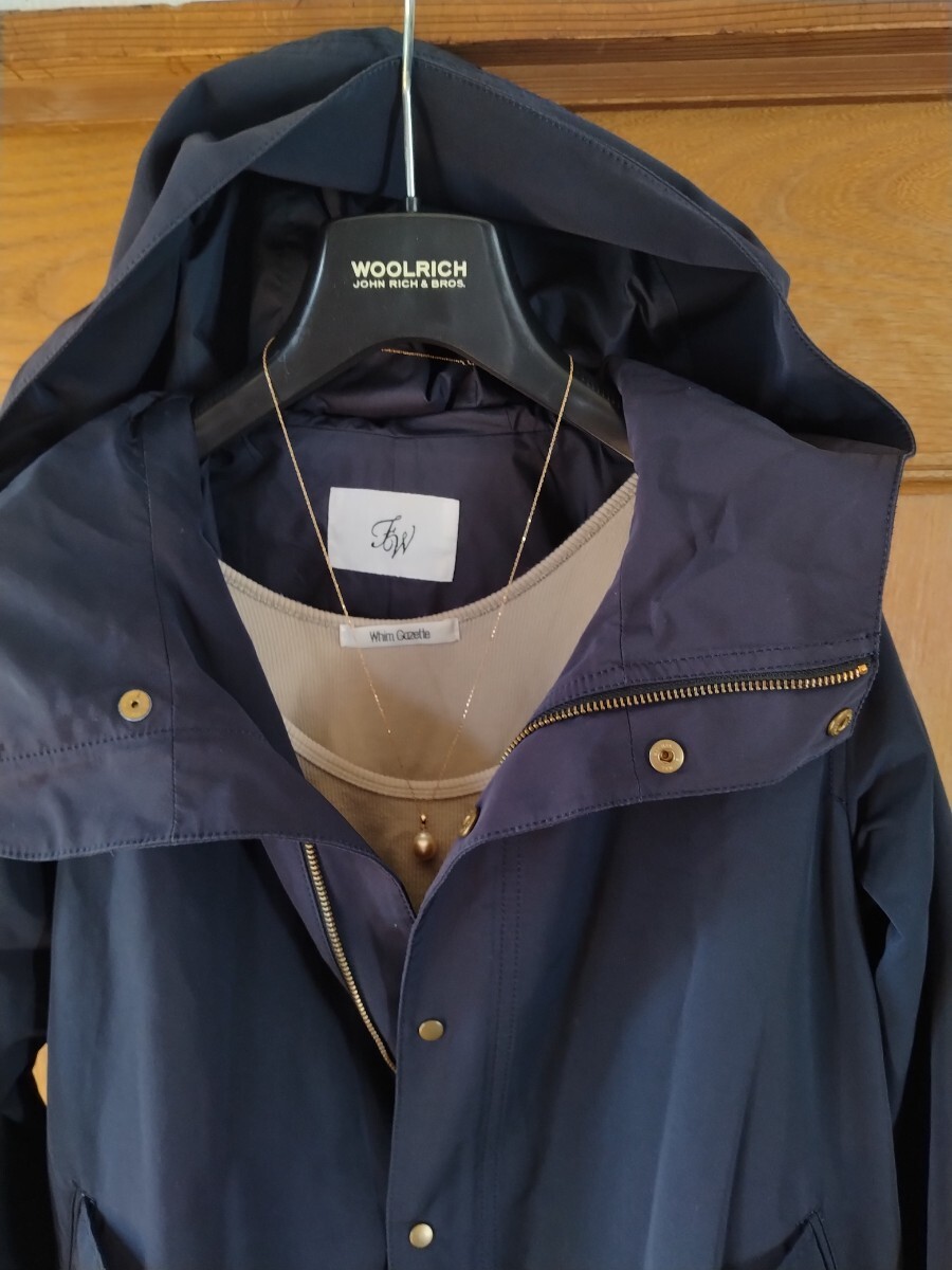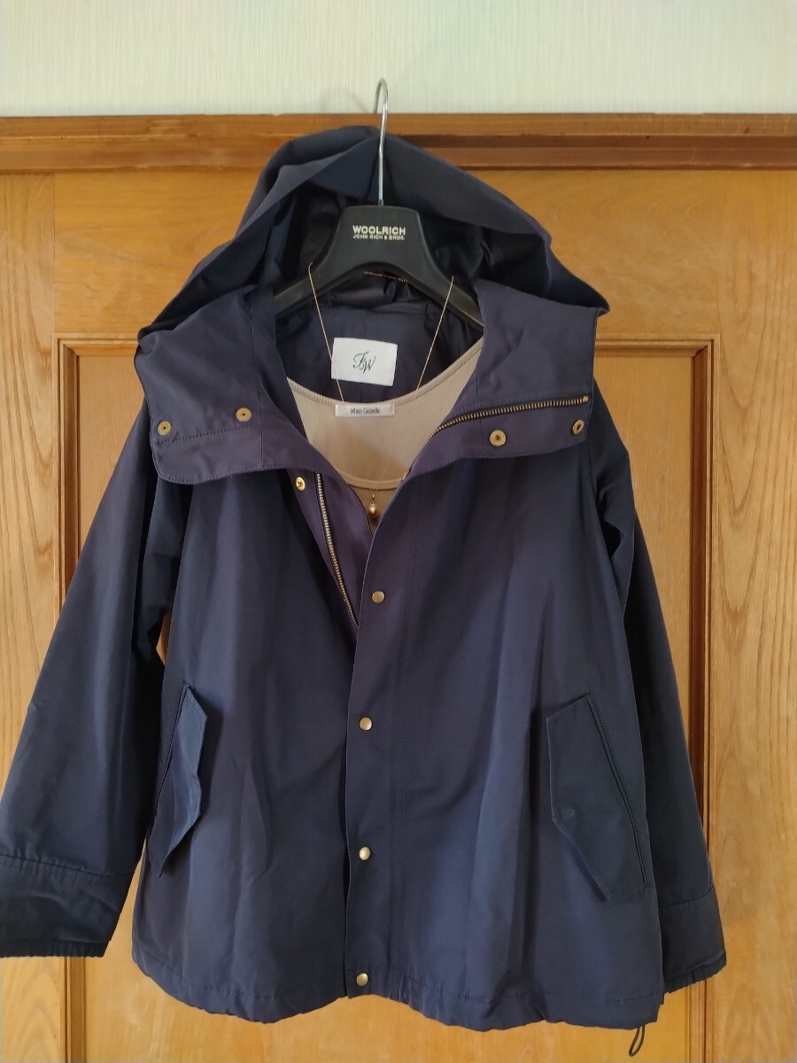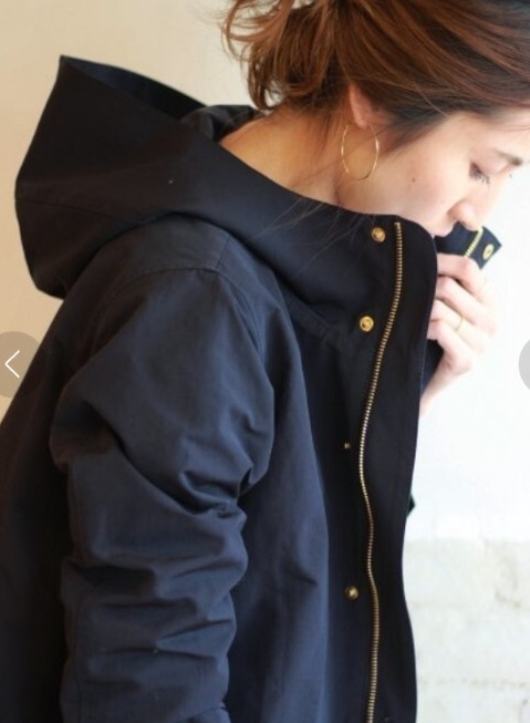 人気のネイビー。光沢感を抑えた生地感はカジュアルになりすぎずデイリーユースしやすい1枚です。 Aラインシルエットは柔らかい印象でサイドのアジャスターを絞っていただくとラインの変化を楽しめます。 ゴールドのジップを使用しており大人な印象。 着こなしの幅が広がるベーシックカラーでどんなスタイルにも羽織っていただけます。ワンシーズン着用の美品です。フード、お袖など生地のアタリにより若干色あせがありますので、それが気になるかたはご入札をご遠慮ください。