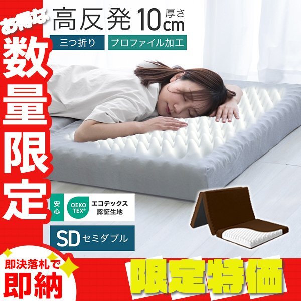 ウレタンの表面に凹凸加工を施し、より快適な寝心地を追求しました! 身体を「点」で支え姿勢に合わせて柔軟に変形し、特定の部位に負担がかかるのを防ぎます。 当店のマットレスは適度な反発力と体圧分散性により、理想的な寝姿勢を維持します。 適度な反発力は寝返りが打ちやすく快眠へと導き、スッキリした目覚めを迎えられます♪ 床敷きでも使える厚みたっぷり約10cm! さらに優れた耐久性でへたりにくく、長くご使用いただけます。 サッと折りたためて収納しやすく、立て置きで湿気対策にもなります。 また、カバーは簡単脱着可能なU字ファスナー仕様&洗えていつでも清潔に使えます。 お好みで裏返してフラット面でもお使いいただけます! 【商品仕様】 カラー:ブラウン サイズ(約)120×195×10cm(セミダブル) 重量(約):7.2kg 素材:高反発ウレタン 、パイル生地 他 硬さ:190ニュートン ※耐熱仕様ではございませんので、電気毛布との併用はおやめください |