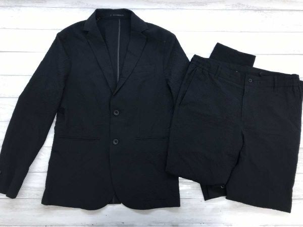 アバハウス ABAOUSE トラッド モード シアサッカー アンコン ジャケット パンツ 2つボタン スーツ 上下セットアップ メンズ 44 黒 です。