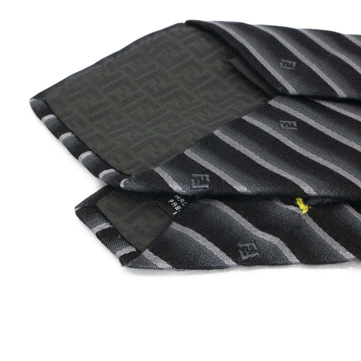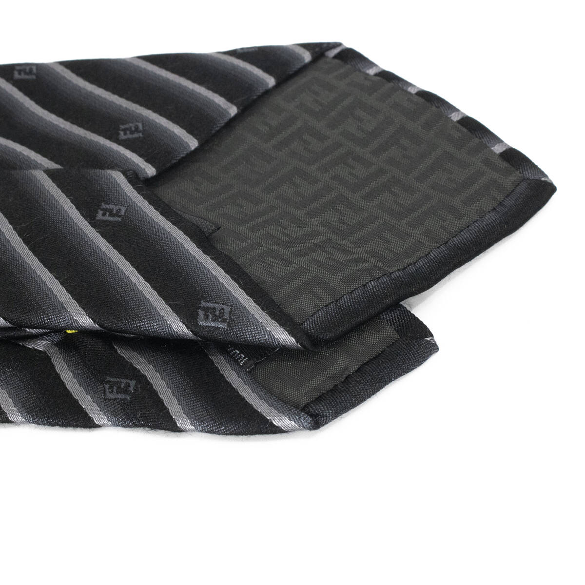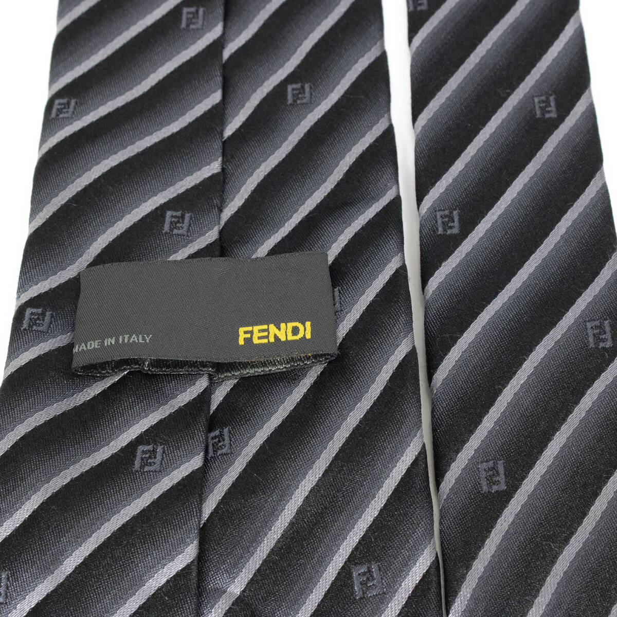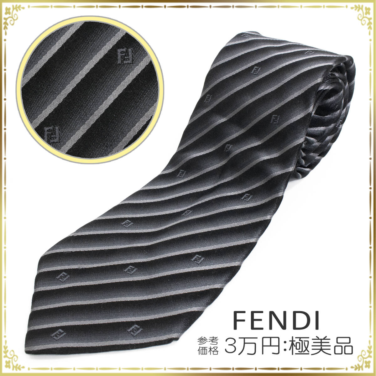 【全額返金保証・送料無料・極美品】フェンディのネクタイ レジメンタルストライプ 正規品 ブラック グレー 綺麗 メンズ ビジネス 通勤