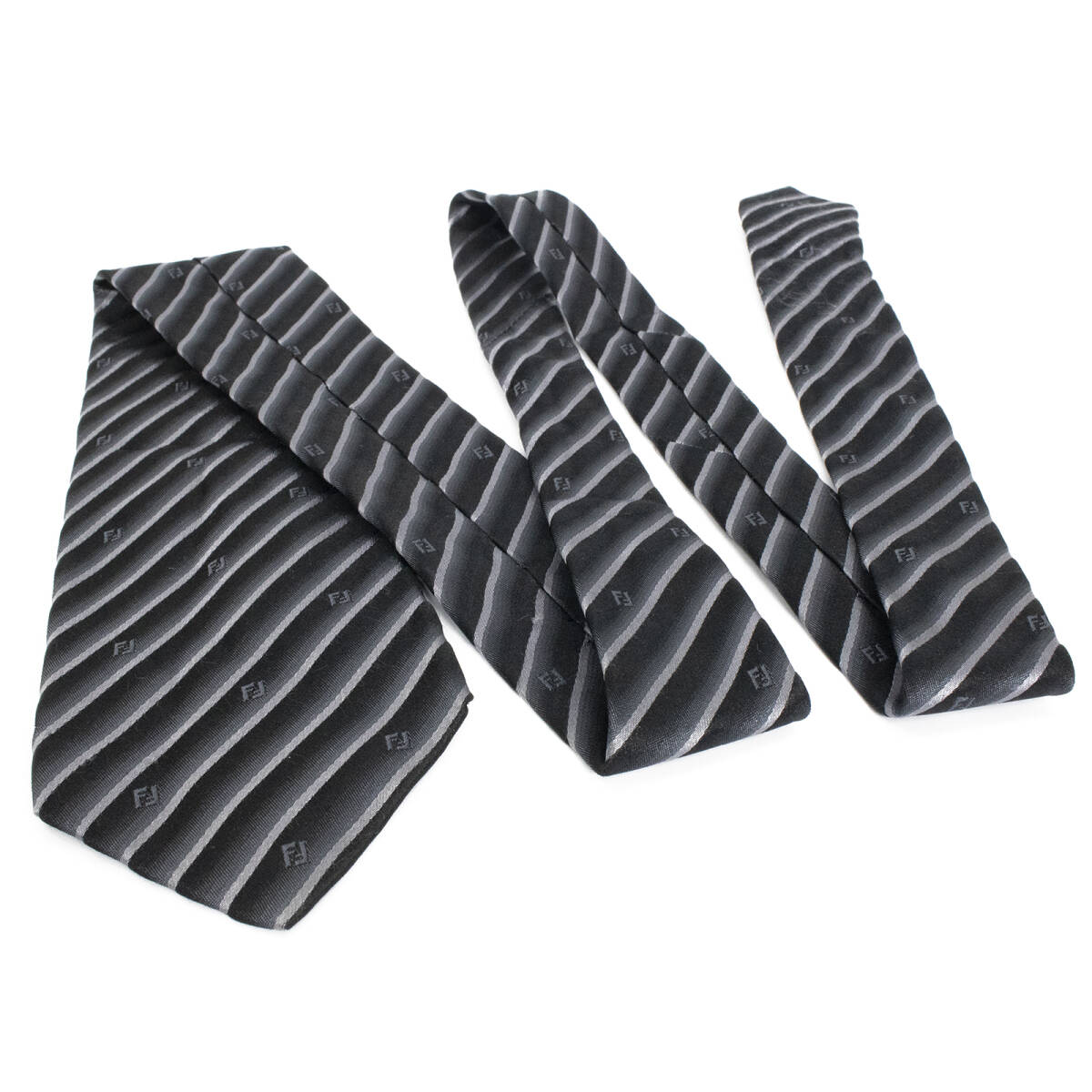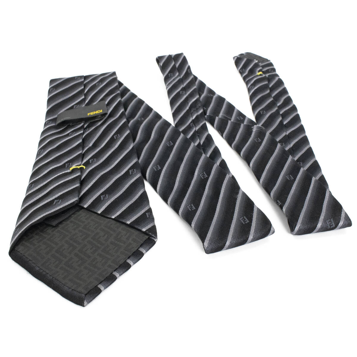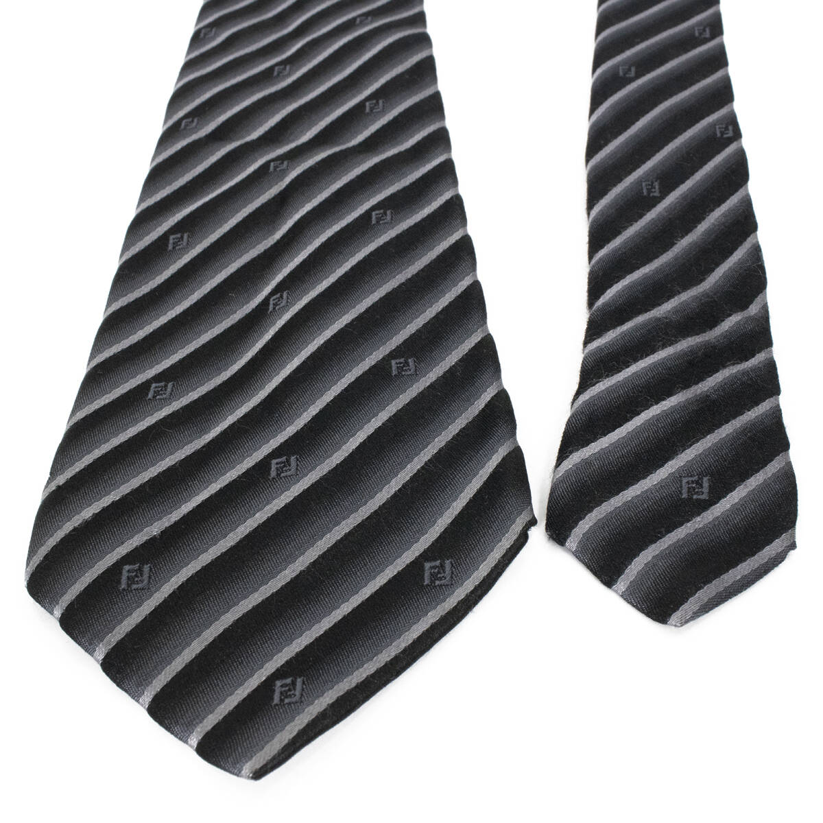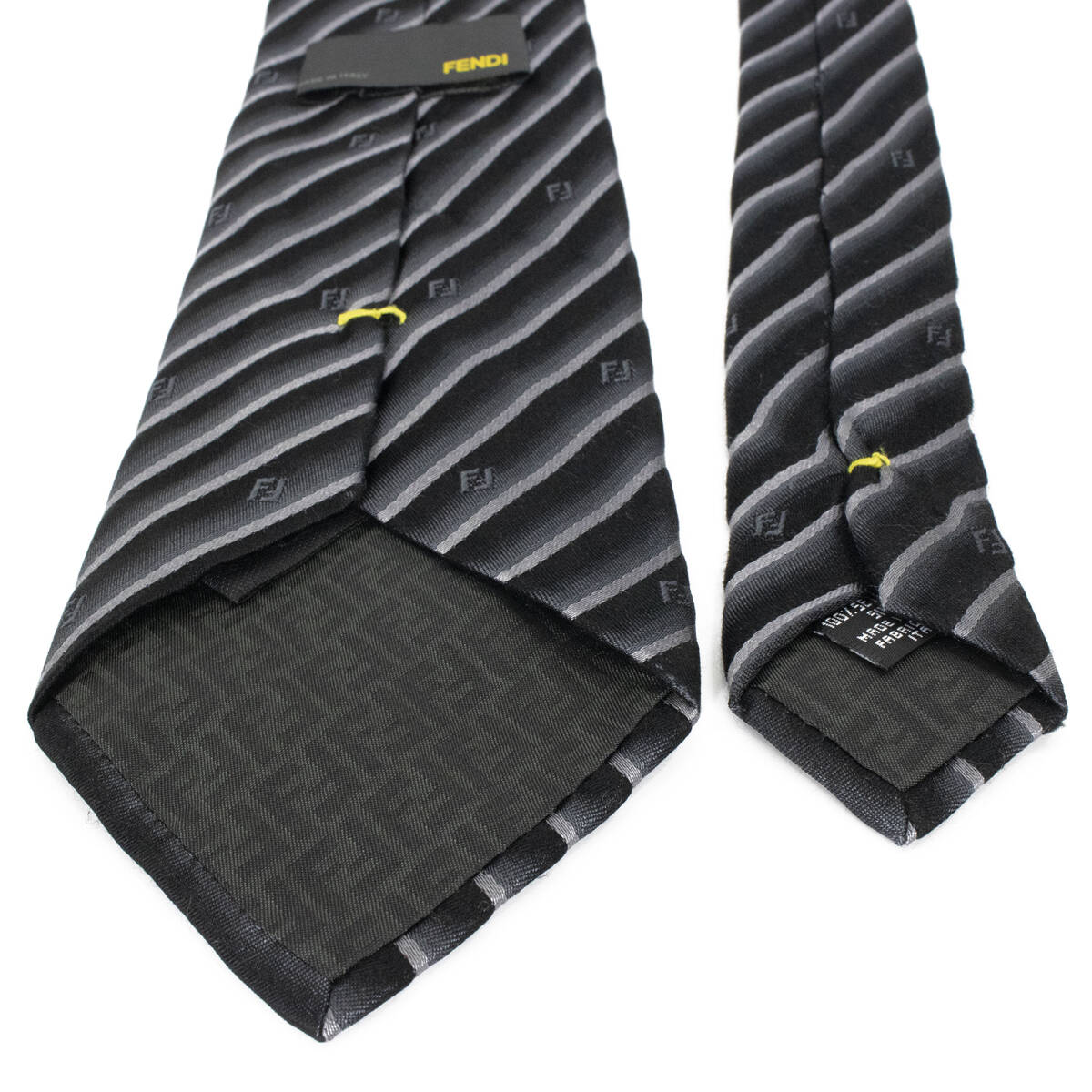 【全額返金保証・送料無料・極美品】フェンディのネクタイ レジメンタルストライプ 正規品 ブラック グレー 綺麗 メンズ ビジネス 通勤