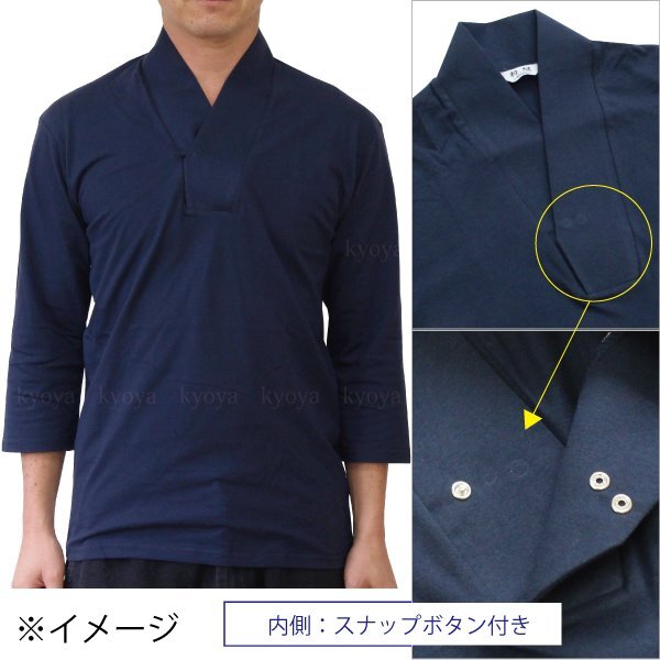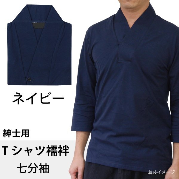 Tシャツ襦袢 Lサイズ 七分袖 ネイビー 紺 紳士用 襦袢風 肌着 綿100% メンズ 男性 着物 作務衣 さむえ 和装 インナー カラー 色