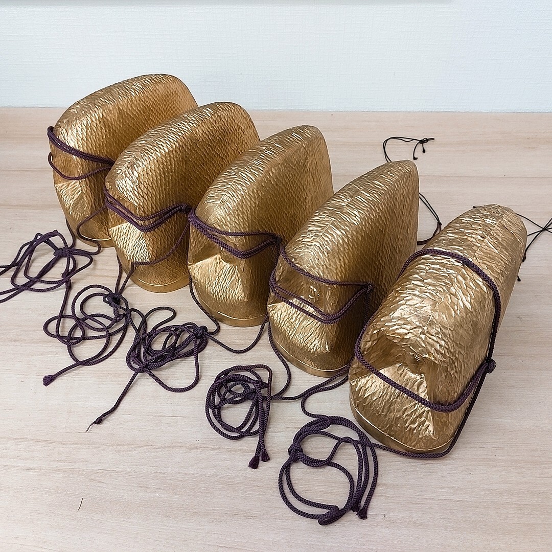 美品 保管品 金 烏帽子 5個組 和服 和装 装束 衣装 小道具 舞台 歴史 神社 寺院 仏閣 仏具 仏教 神道 儀式 神職 帽子 紙製 金冠