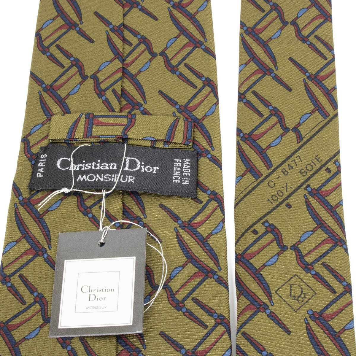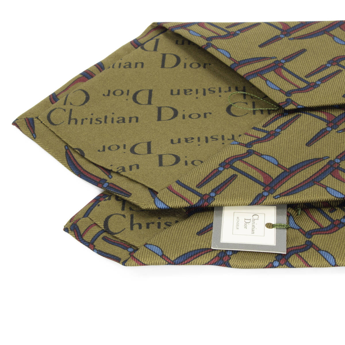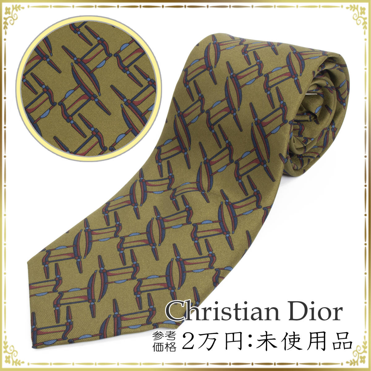 【全額返金保証・送料無料・未使用品】ディオールのネクタイ モンシュール 正規品 オールオーバー 総柄 グリーン系 ビジネス 通勤