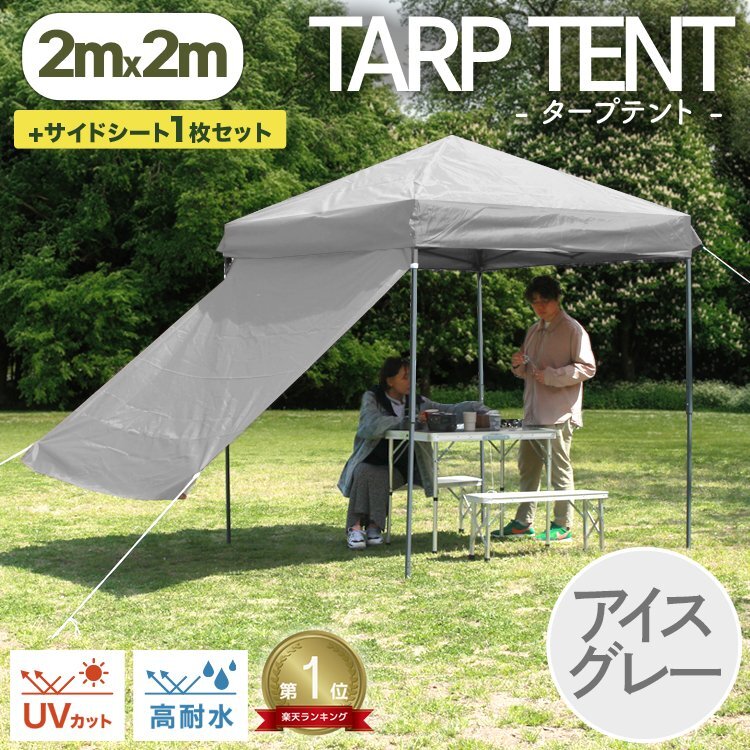 日よけで、直射日光から守る! コンパクトなサイズ2m×2mのワンタッチタープテントです。