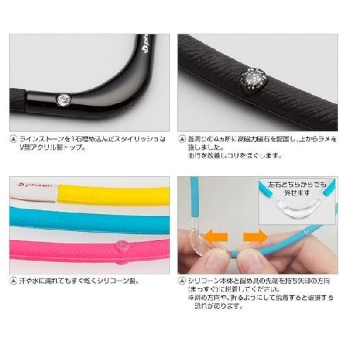 45cm・50cm 本体生地:ポリエステル 中芯:磁石 留め具:ステンレス、ポリアセタール 原産国:日本製 【スタイリッシュなVトップ! 】多くの人が悩んでいる肩コリを、磁気のチカラで改善!ネックの4箇所に配置された高磁力の磁石が、装着部分の血流を促してコリをほぐします。