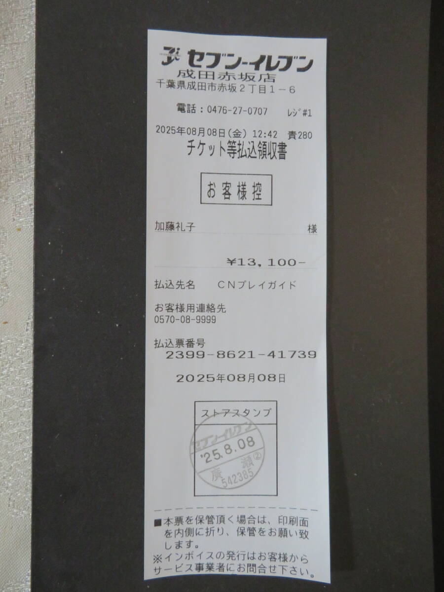 2025年11月2日(日)午後6時00分開始 成田ニュータウンスポーツ広場 A会場 イス席指定 2枚(ペア)です。
