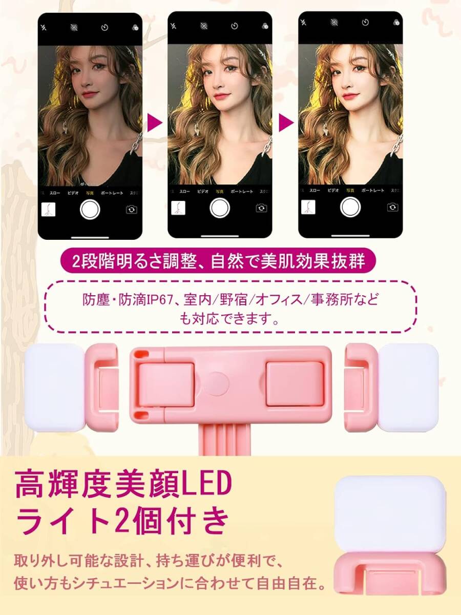 ◎1~3日以内での発送完了を目指しております。斬新な自撮り棒をご紹介いたします。この自撮り棒は驚くほど機能的で、高輝度LEDライト2個が付属しています。これらのライトは自撮り棒の上下どちらにも自由に取り付けることができ、昼光色、昼白色、電球色の3色の照明モードが選択可能です。