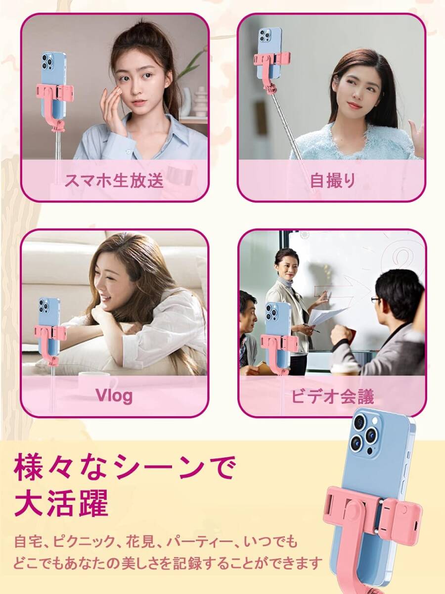 驚くべきことに、この自撮り棒は三脚としても使用することができます。これにより、自撮り写真だけでなく、ビデオコール、ライブストリーミング、ウェブ会議などにも最適です。縦向き、横向きどちらでも撮影が可能なので、とても便利なアイテムです。