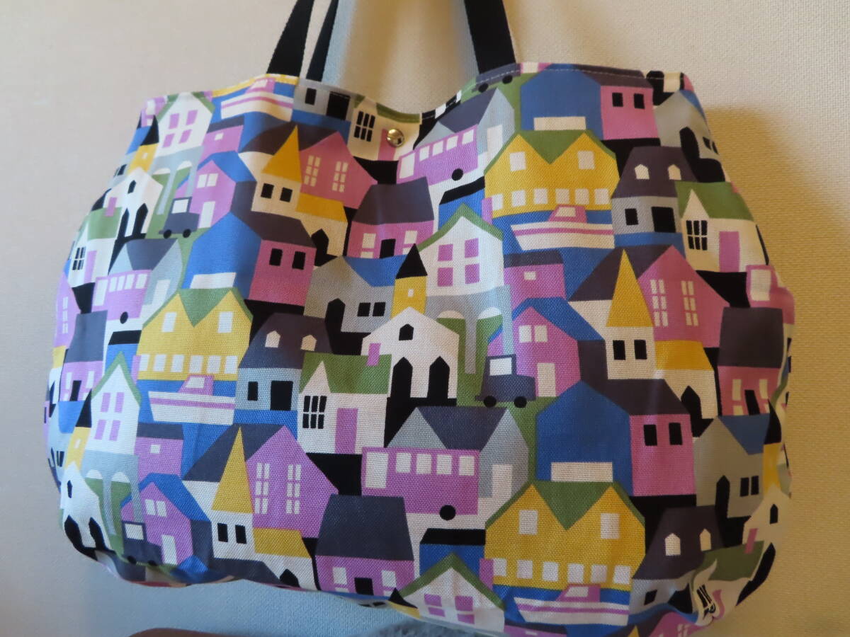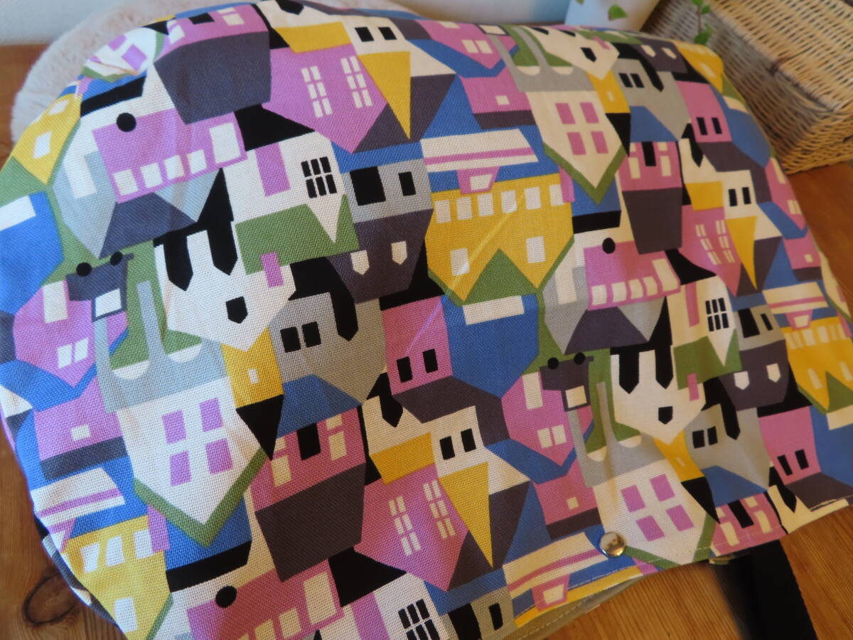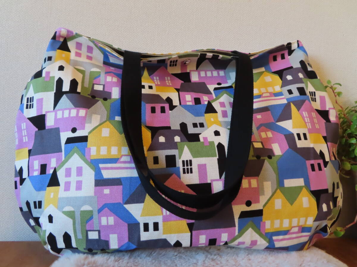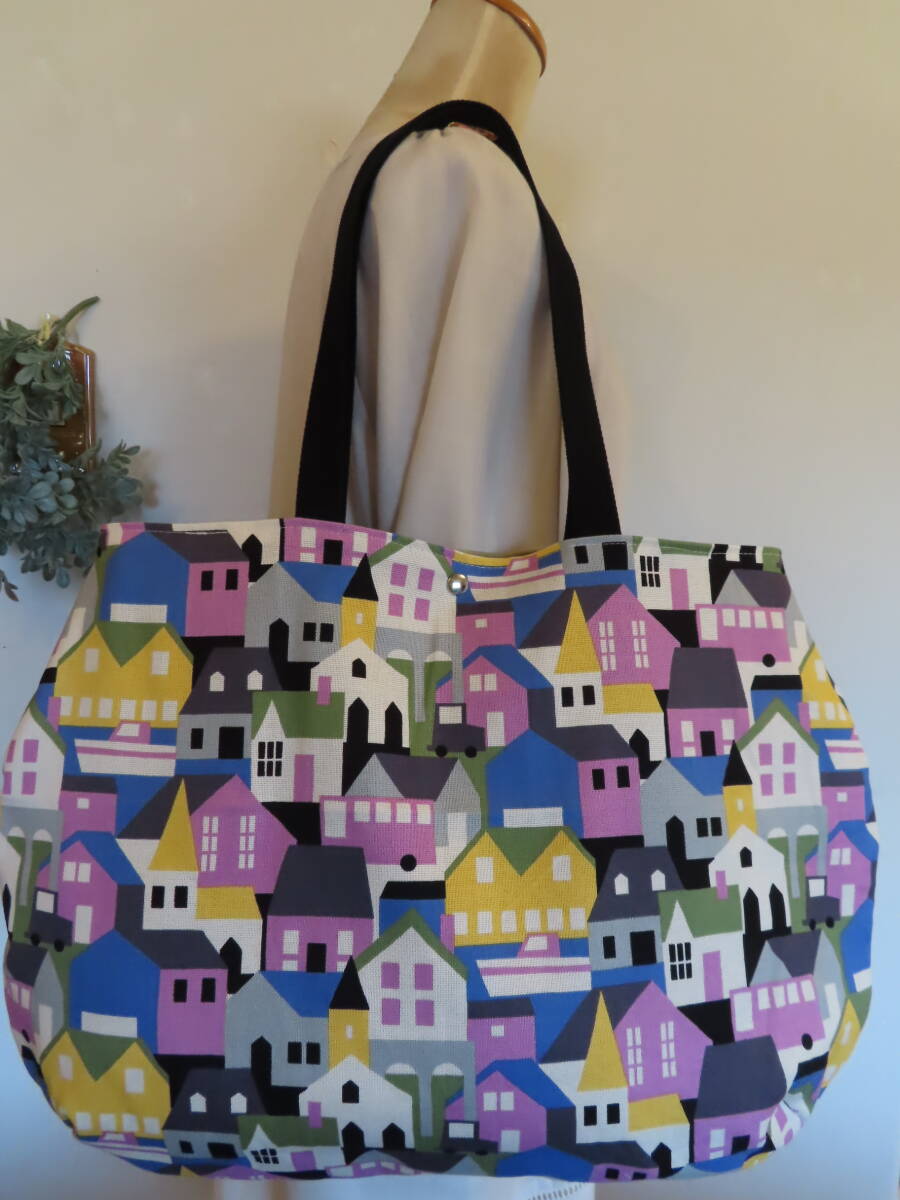 25 ハンドメイド ころんと丸い BIG肩掛けトートバッグ 厚地 北欧柄 プリント
