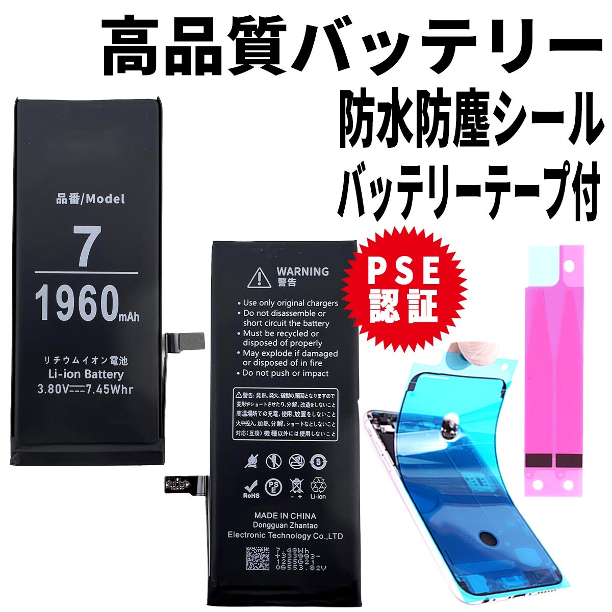 iPhoneの充電の減りが早くなったり、バッテリーが膨らんで膨張し始めたら交換が必要です。 そのままご使用になると他の部分の破損に繋がりますので、 そんな時にはこちらの、セット一式で新しいバッテリーに交換できます! 出品中のバッテリーはすべてPSE認証済ですし、新機能のバッテリー状態を確認する機能でも、 正常に判断できる【電圧3.7v】のバッテリーなので、安心安全に長くご利用いただけます。 今なら、 バッテリーを取り付けるiPhone専用両面テープ・防水シールもお付けします! 品質は純正品相当の高品質であり安心安全のPSE認証付です。 |