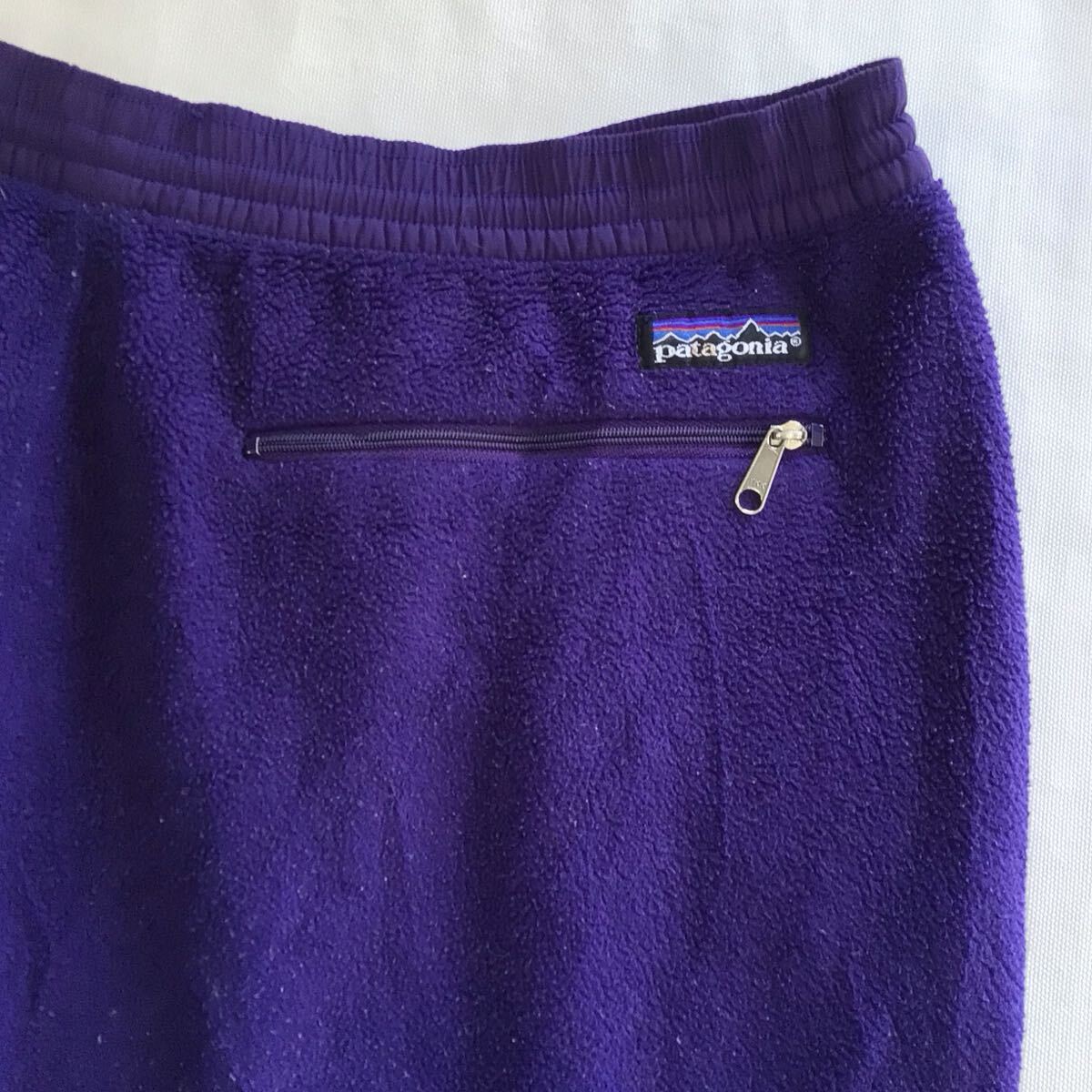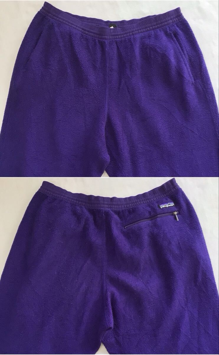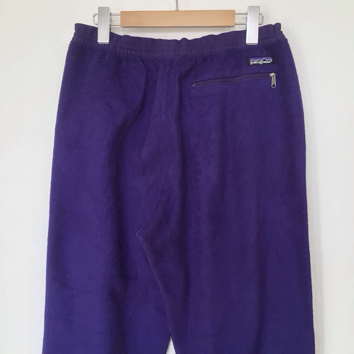 ディテール:90年代パタゴニアのフリースパンツ、嬉しいアメリカ製です。裾上げの形跡あり、コンパクトなサイズをお探しの方におすすめです。使用感はありますが着用に差し支える程のダメージはなく、アウトドアシーンに、スタイリングのアクセントにと活躍しそうです。