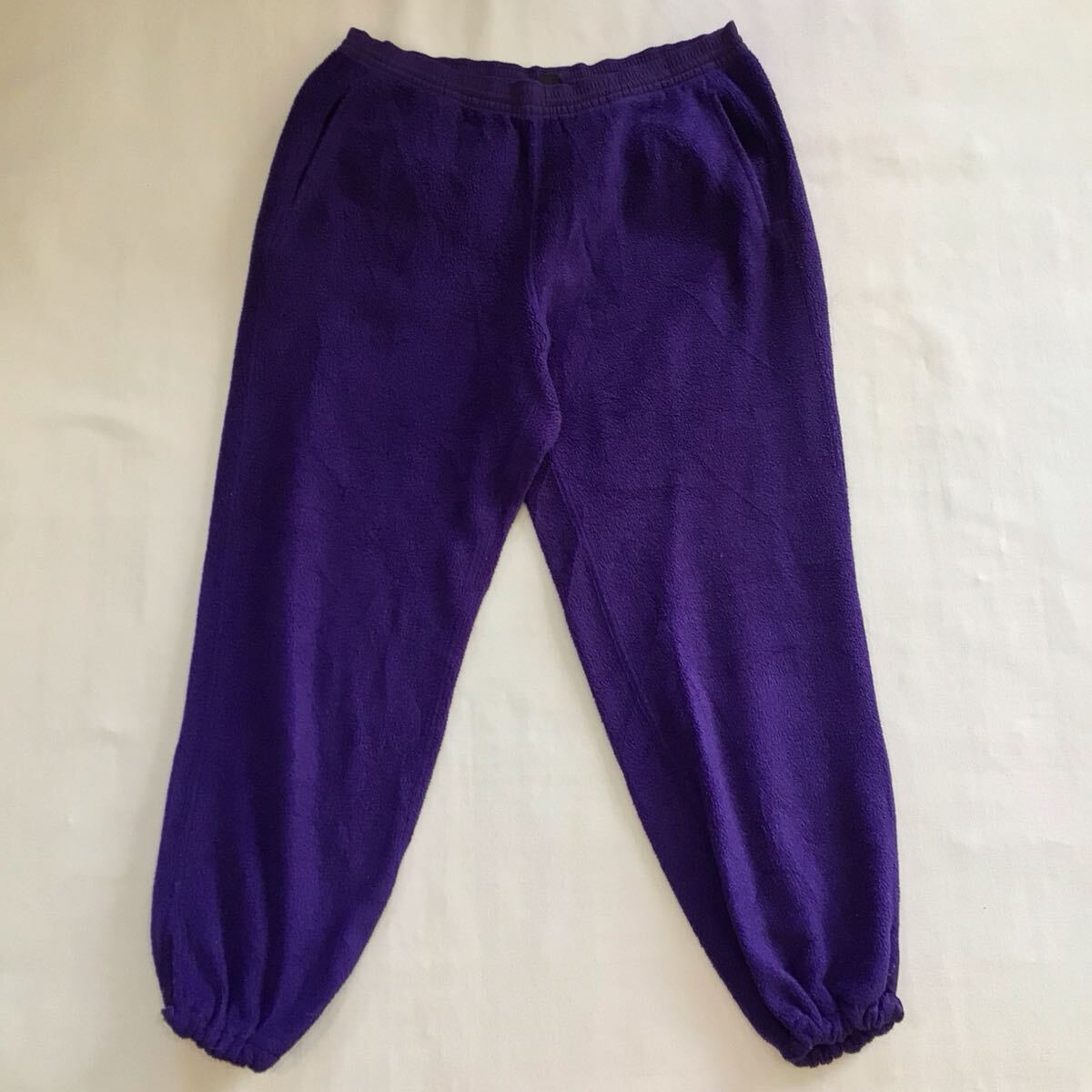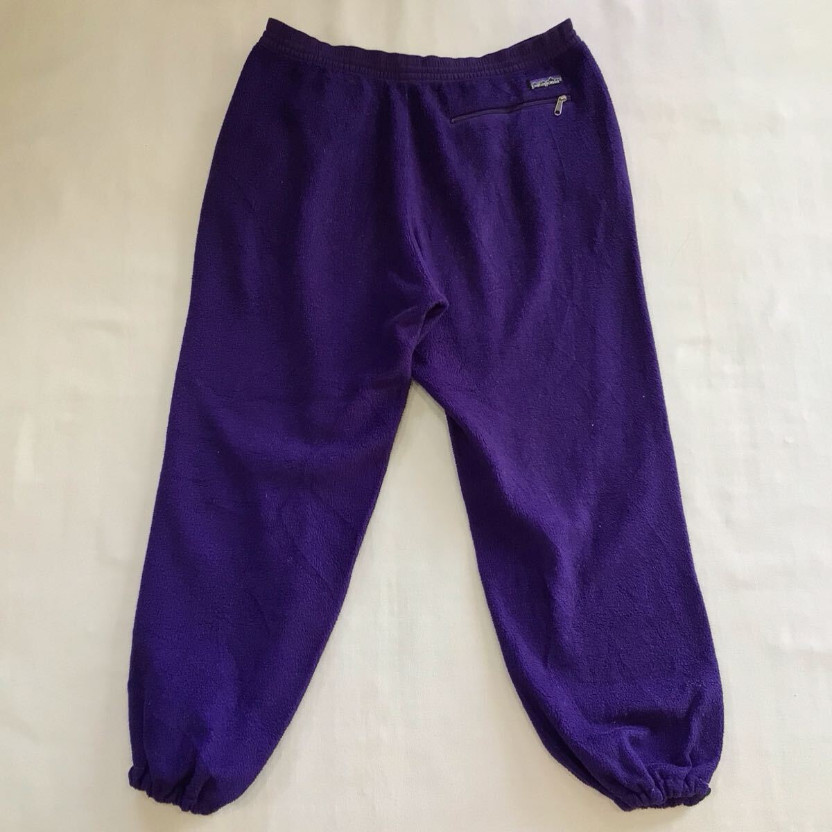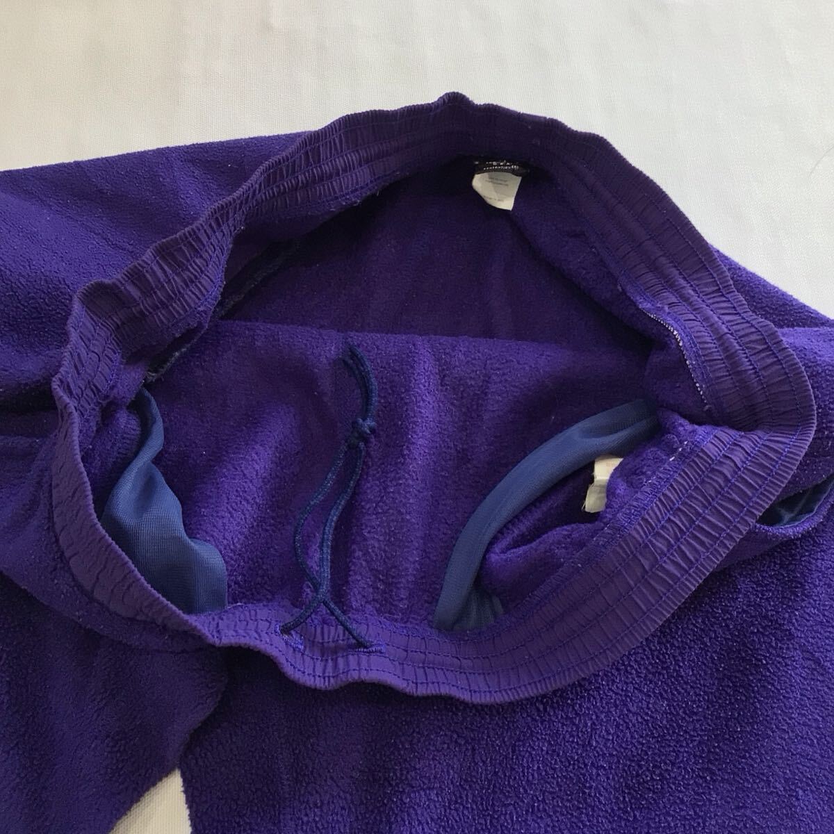 ディテール:90年代パタゴニアのフリースパンツ、嬉しいアメリカ製です。裾上げの形跡あり、コンパクトなサイズをお探しの方におすすめです。使用感はありますが着用に差し支える程のダメージはなく、アウトドアシーンに、スタイリングのアクセントにと活躍しそうです。