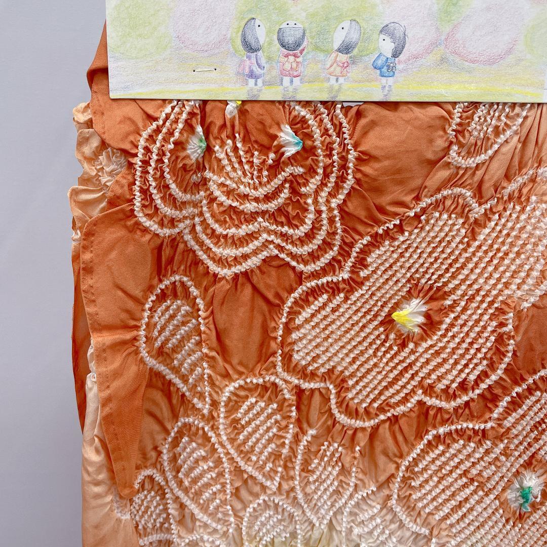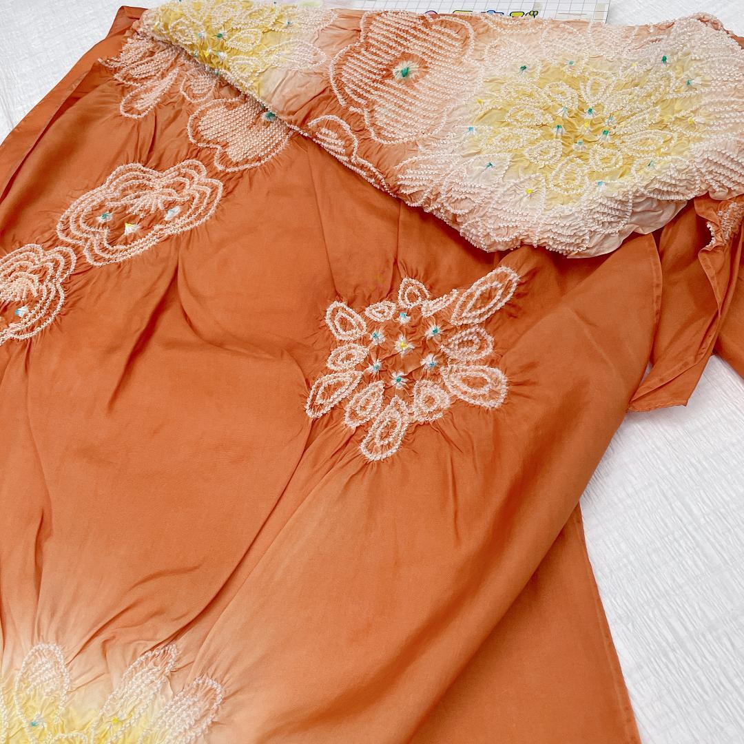 ★色・・やや明るめの茶色の地に、茶みのある淡い黄色、青緑色などの絞り染め