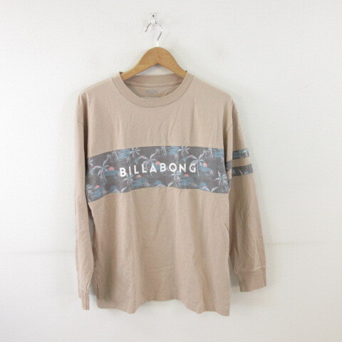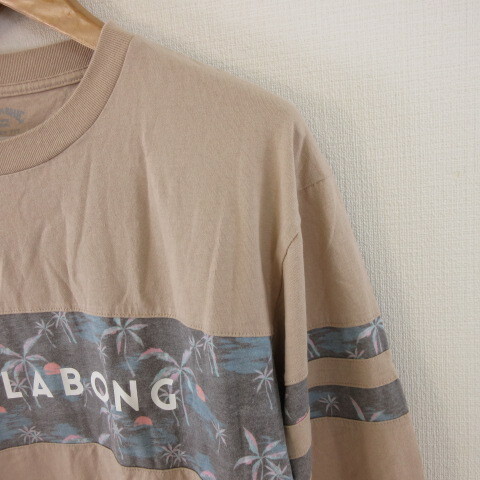 ビラボン BILLABONG Tシャツ 丸首 長袖 プリント ベージュ L *A110 メンズ