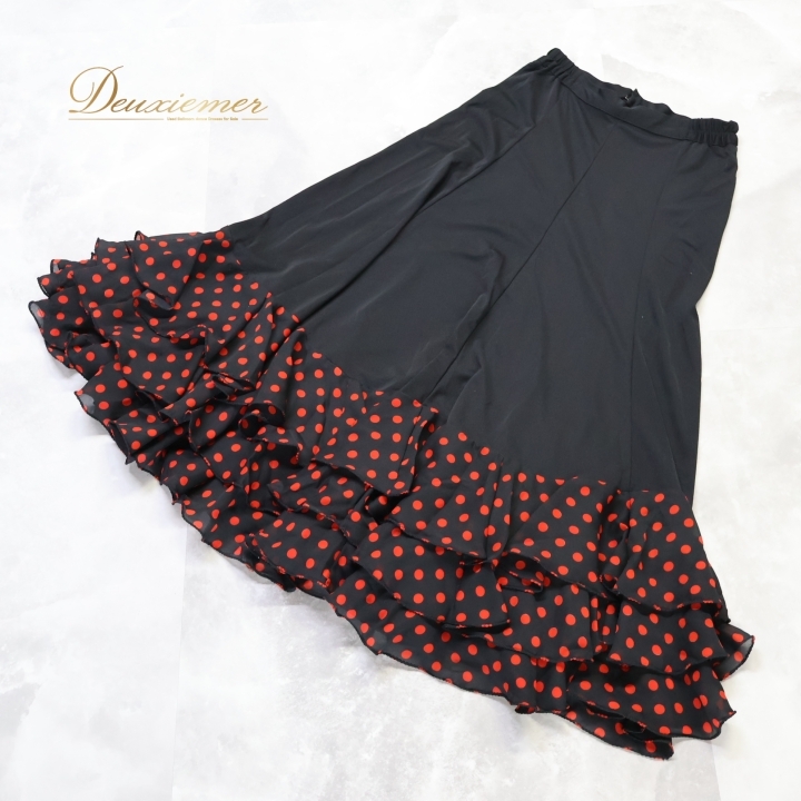 | 【商品名】フラメンコ衣装 ファルダ スカート 【サイズ】表記無し 平置き実測:総丈約91cm、ウエスト約33.5cm ※実測の為、多少の誤差はご容赦願います 【仕様】 ・背面ファスナー仕様 ・ウエストのみ若干伸縮性有り 【品質表示】 ポリエステル100% ------------------------------------ 【ポイント】 ▽ICHIOKU イチオク ▽ブラック×レッド ▽かわいい水玉デザイン ▽段々ボランテでボリューム◎ ------------------------------------ 【撮影時使用トルソー】 種 類:女性用トルソー9号 (一般的に使用されるサイズです) サイズ:肩幅約37cm、バスト約88cm、ウエスト約66cm、ヒップ約89cm |