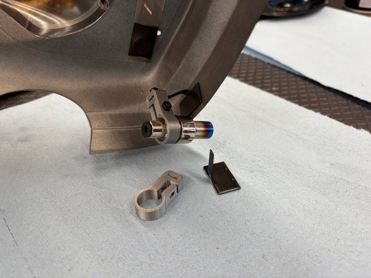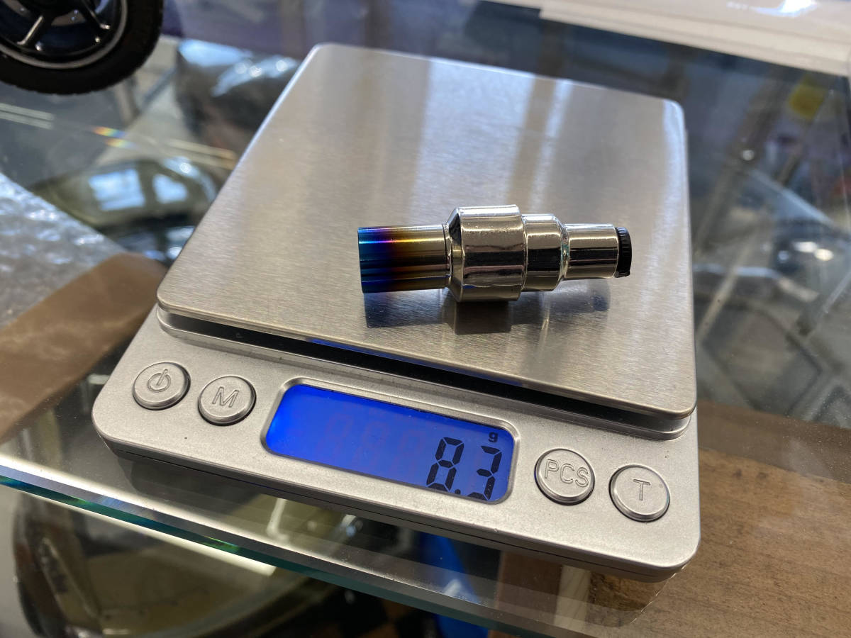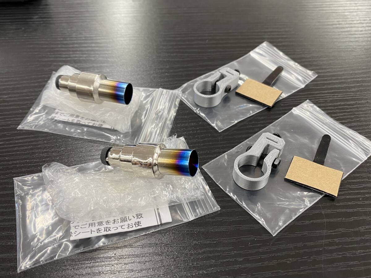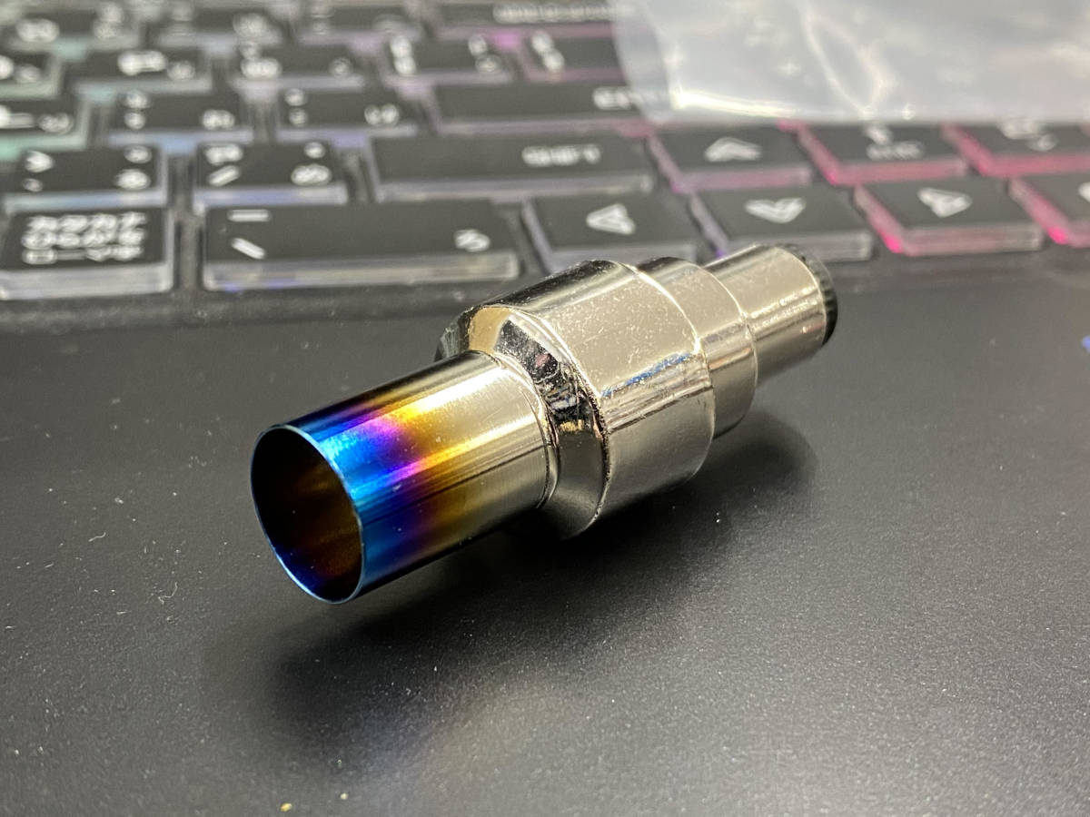 本体タイコ部分は樹脂メッキ製、マフラーエンドは綺麗な焼き色のついたステン製です。
