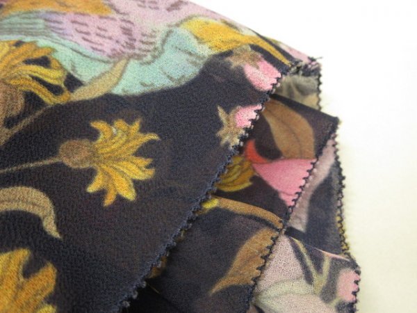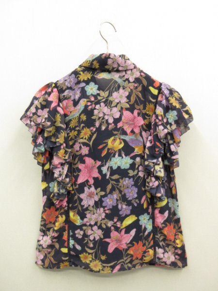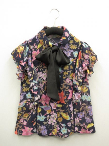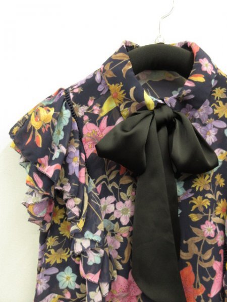 取外し可能なリボンや鮮やかなフラワープリントがポイントのシフォンブラウス