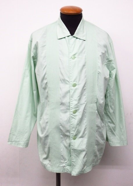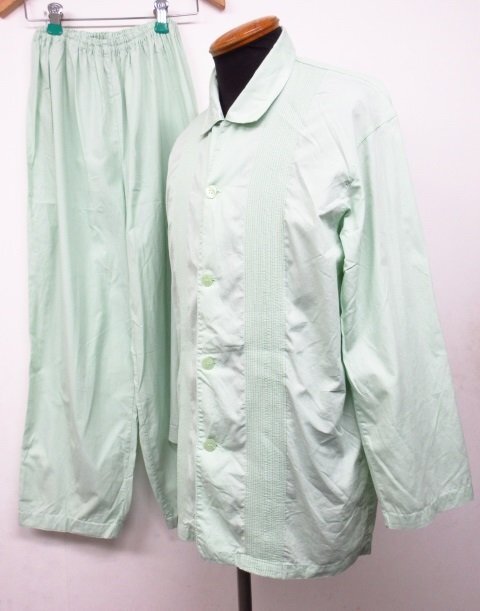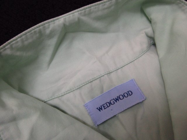 m4613 WEDGWOOD パジャマ上下セット 長袖長ズボン 日本製 グリーン系 綿100% ボタン フルオープン ピンタックデザイン