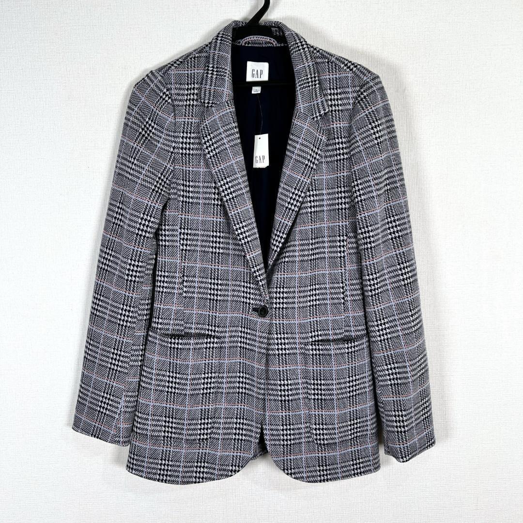 女性用のグレー系のチェックテーラードジャケット アウターです。新品タグ付きの未使用品です。古着 ギャップ GAP