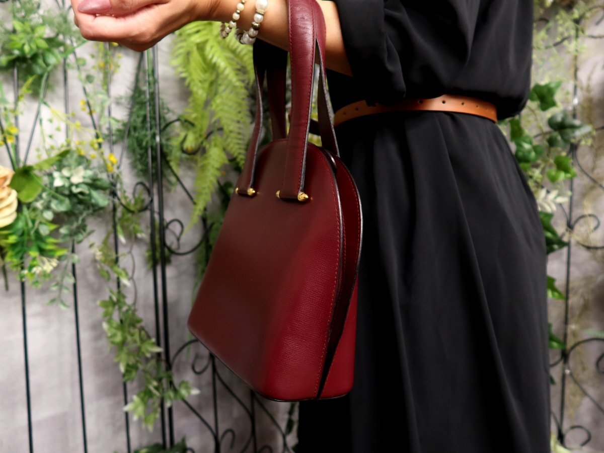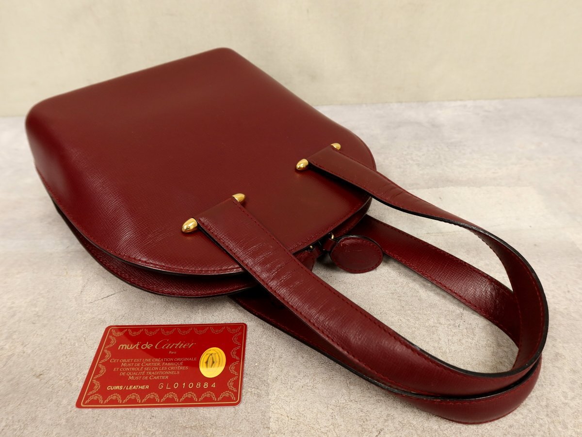 ●超美品●Cartier カルティエ●マスト●カーフ レザー 本革●ハンド バッグ●ボルドー●ゴールド金具●腕掛け●収納 かばん●Js60885