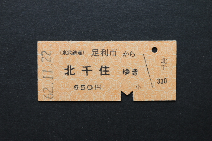 東武鉄道 乗車券 足利市から 北千住ゆき 650円