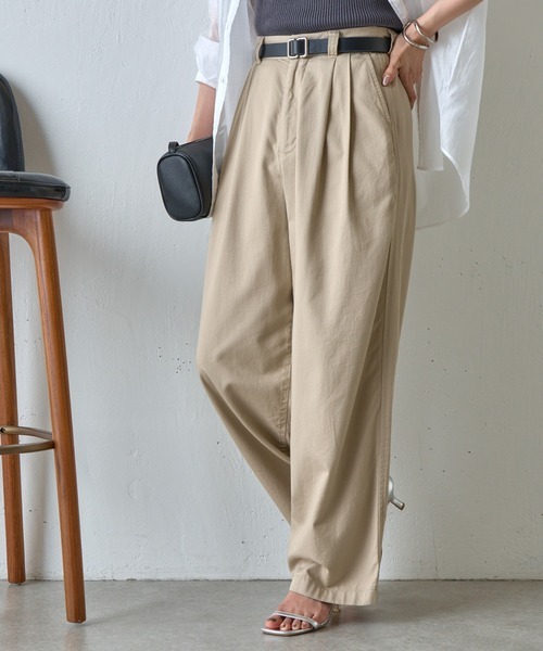 キーワード:チノパン レディース ストレート ハイウエスト フルレングス 無地
