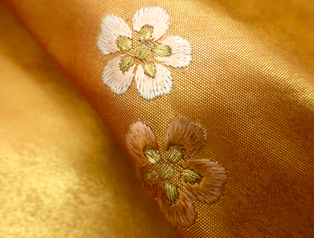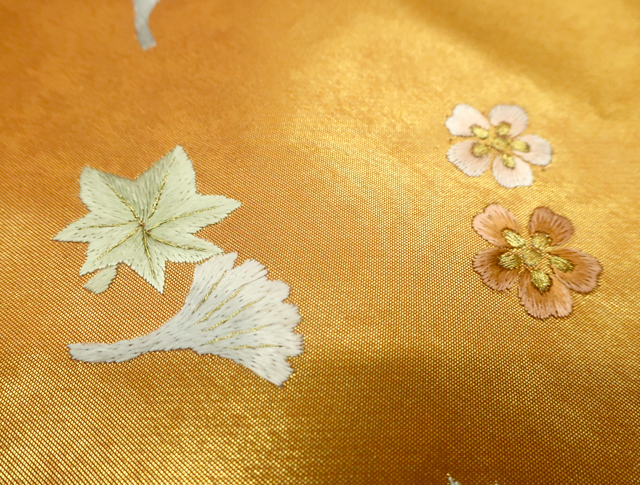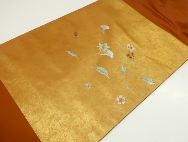 リサイクル商品ではございますが、大変良い状態のお品です。 地色は、薄茶・金色です。 1枚目の画像が近いお色かと思われます。 素材は正絹です。 |