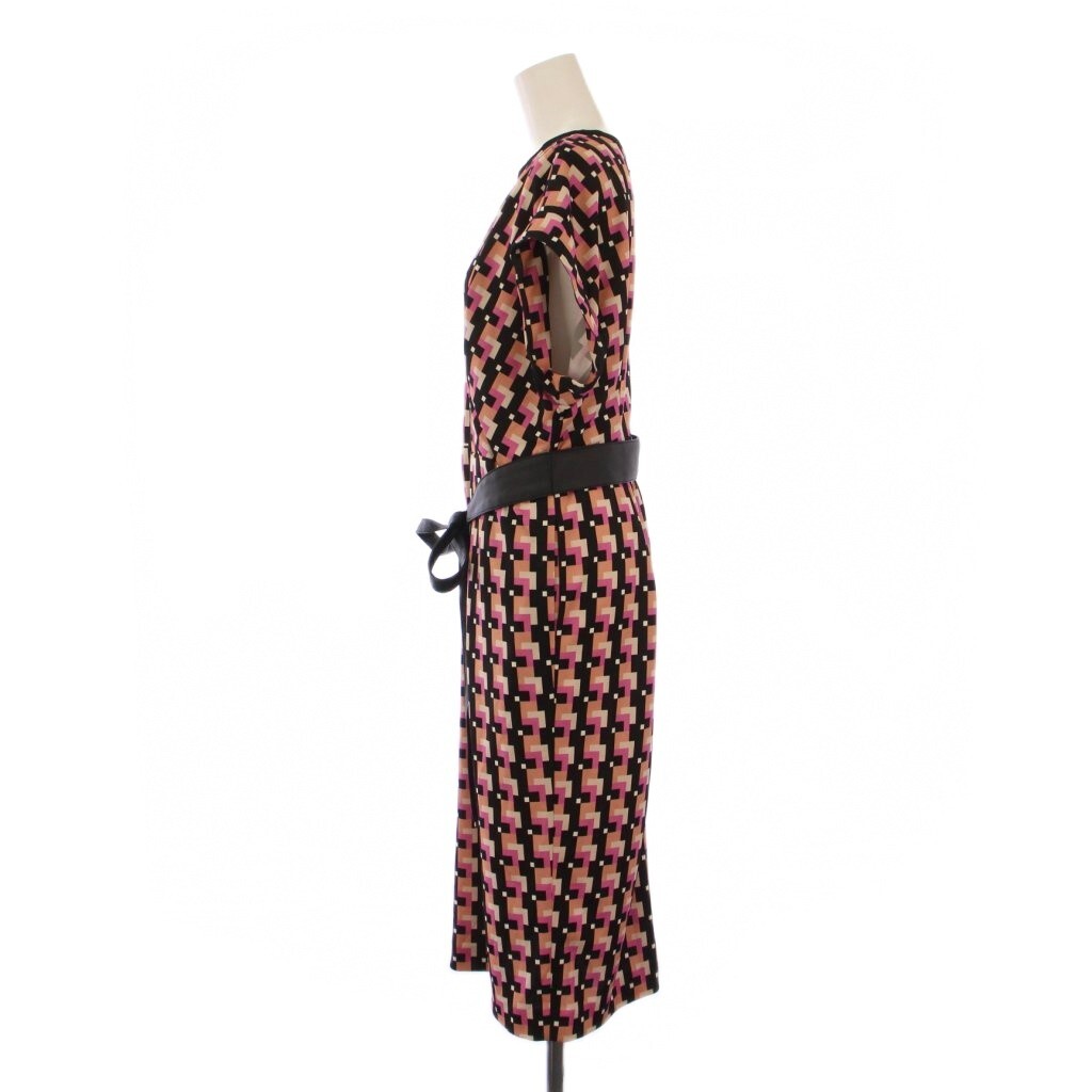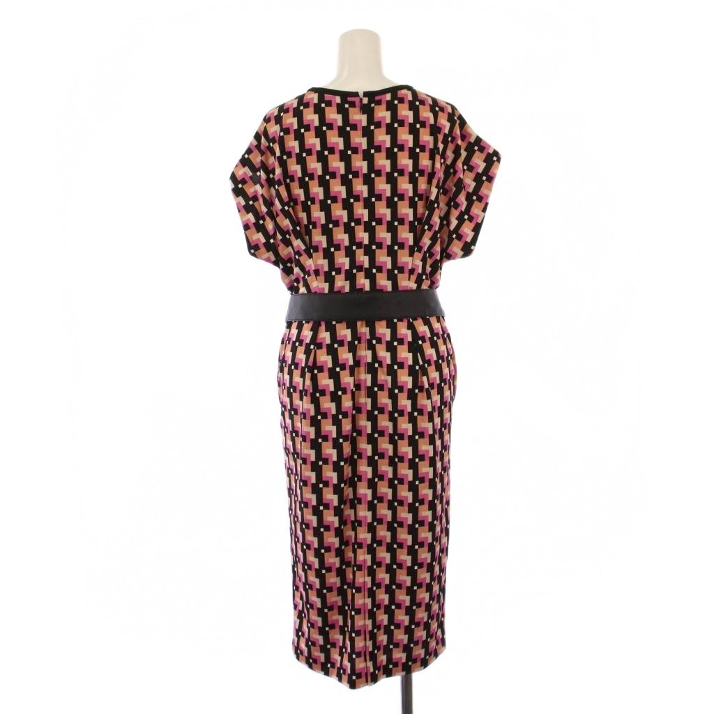 ピンキー&ダイアン ジーンズ ピンダイ Pinky&Dianne Jeans 22SS ワンピース ミモレ丈 半袖 総柄 ベルト付き 38 ピンク 黒 レディース