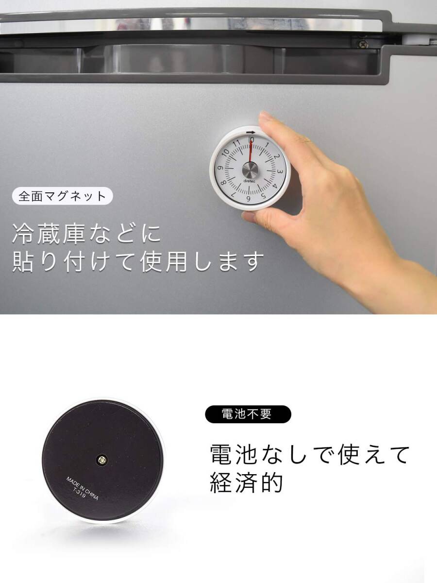 説明 商品紹介 ● あと何分?がひと目でわかる ● 12分計だから目盛りが大きい ● 赤いフィルムで残り時間がわかりやすい ● 電池を使わないので経済的 ● マグネット付き より ●使いやすい12分計のダイヤルタイマー ●12分計だから目盛りが大きく、残り時間がわかりやすい ●赤いフィルムで残り時間がわかる ●セットした時間までフィルムが伸びるので、残り時間がひと目でわかる ●電池を使わないので経済的 ●マグネット付き