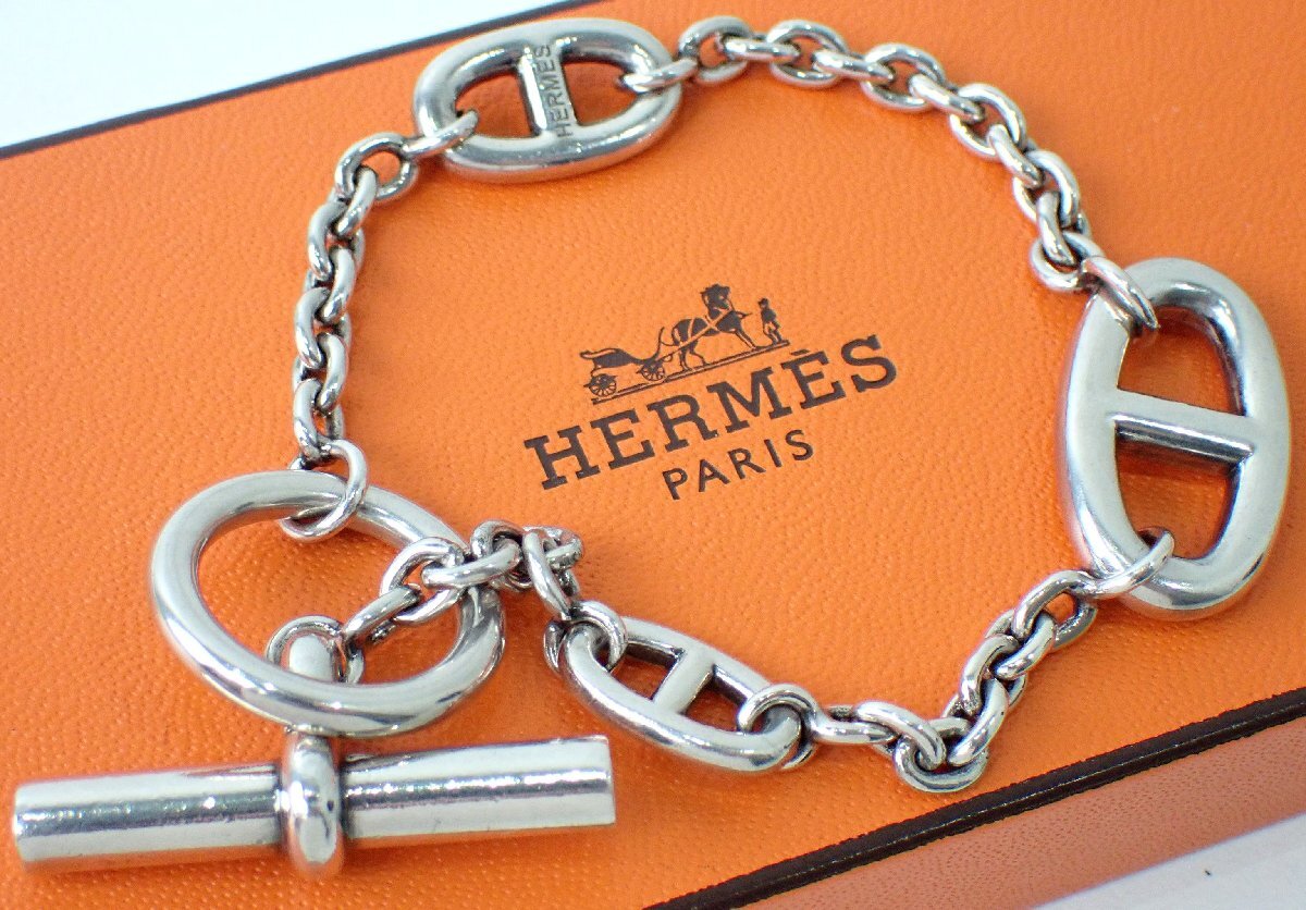 箱付き 美品 エルメス 腕周り16.6cm シルバー925 HERMES シェーヌダンクル・トゥアレグ ブレスレット 26g バングル 360