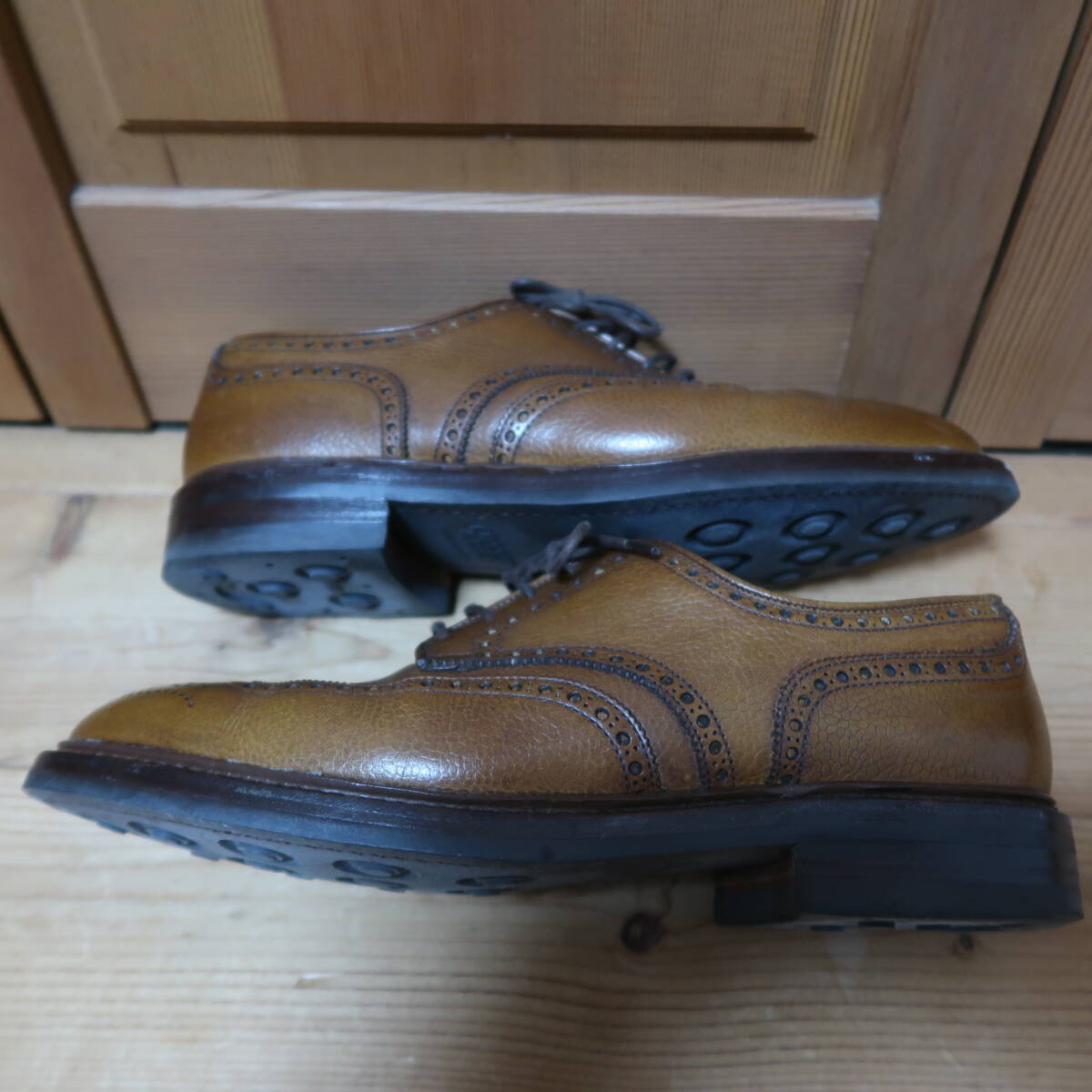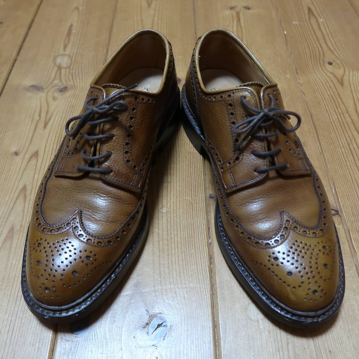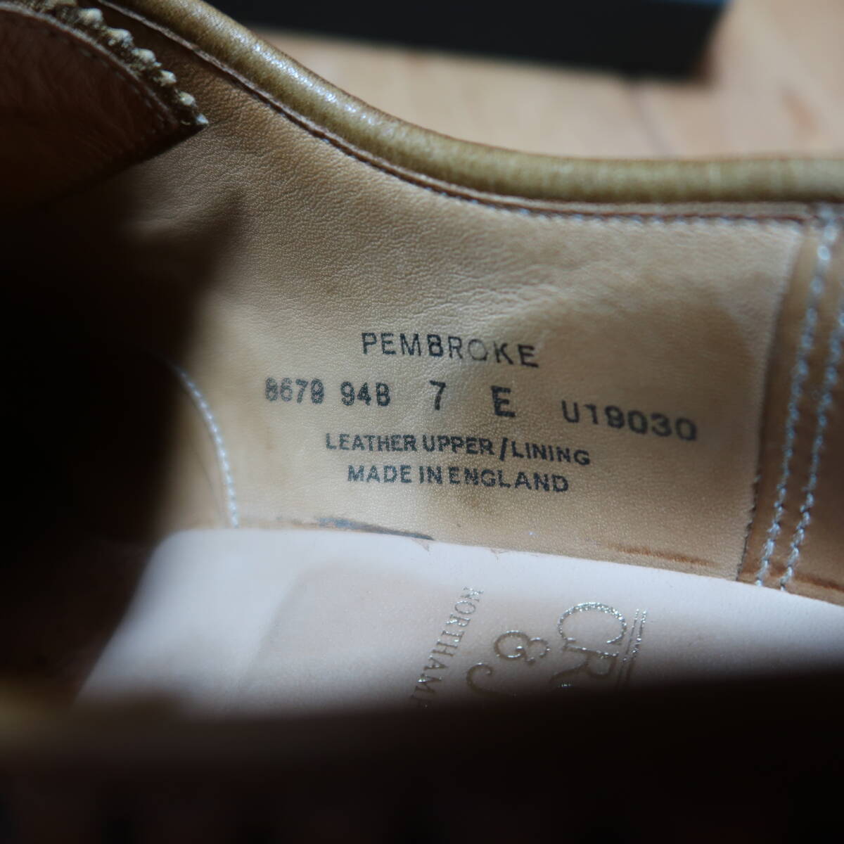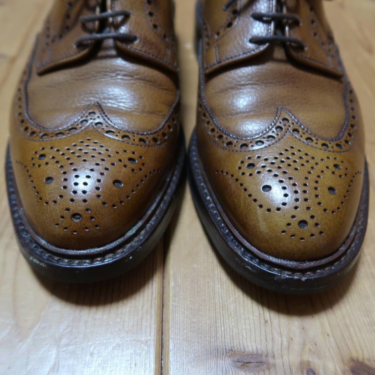| クロケット&ジョーンズのウイングチップ、PEMBROKEの中古品です。 以前、当オークションにて中古品として購入し、10回程度使用したものです。 使用感やソールの減りはあるものの、アッパーやネームの状態は良好で、踵の内側にスレも少なく、まだまだ履けると思います。 当方には少々きつく感じてきましたので、出品します。 なお、送料は当方が負担しますので、この機会にいかがでしょうか? 【商品概要】 ◆モデル名/PEMBROKE(ペンブローク) ◆カラー/タン ◆サイズ/UK7E(25.5cm位) ◆ソールタイプ/ダイナイトソール ◆附属品/箱(別モデルのもの)、靴袋 ◆ソールサイズ/全長:30.0cm、最大幅:11.3cm | ||