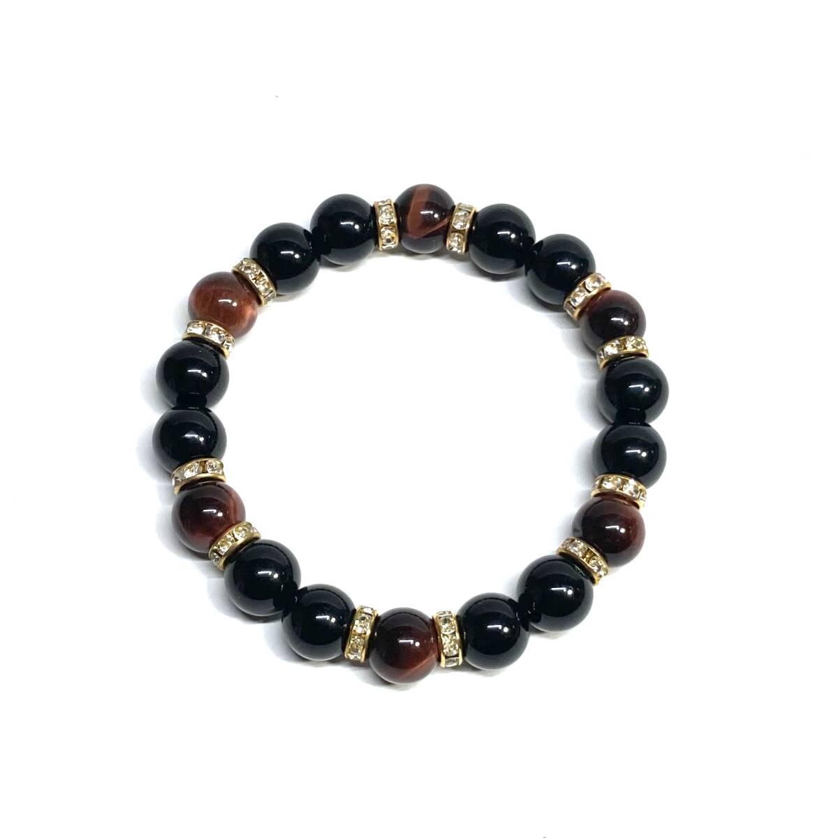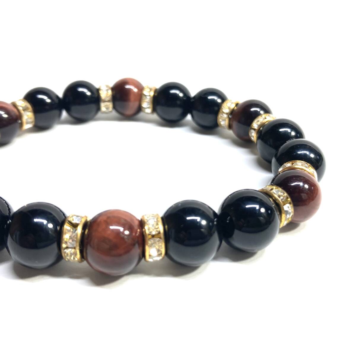 モリオン&レッドタイガーアイ パワーストーン ブレスレット 天然石ブレス (ゴールド) 10mm メンズ・レディース 厄除け 金運 ☆
