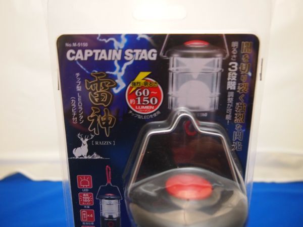 (M45297)未開封 未使用・雷神・チップ型LEDランタン・カラビナ付・M-5150・キャンプ・CAPTAIN STAG・三段階・乾電池式・吊り下げ可能