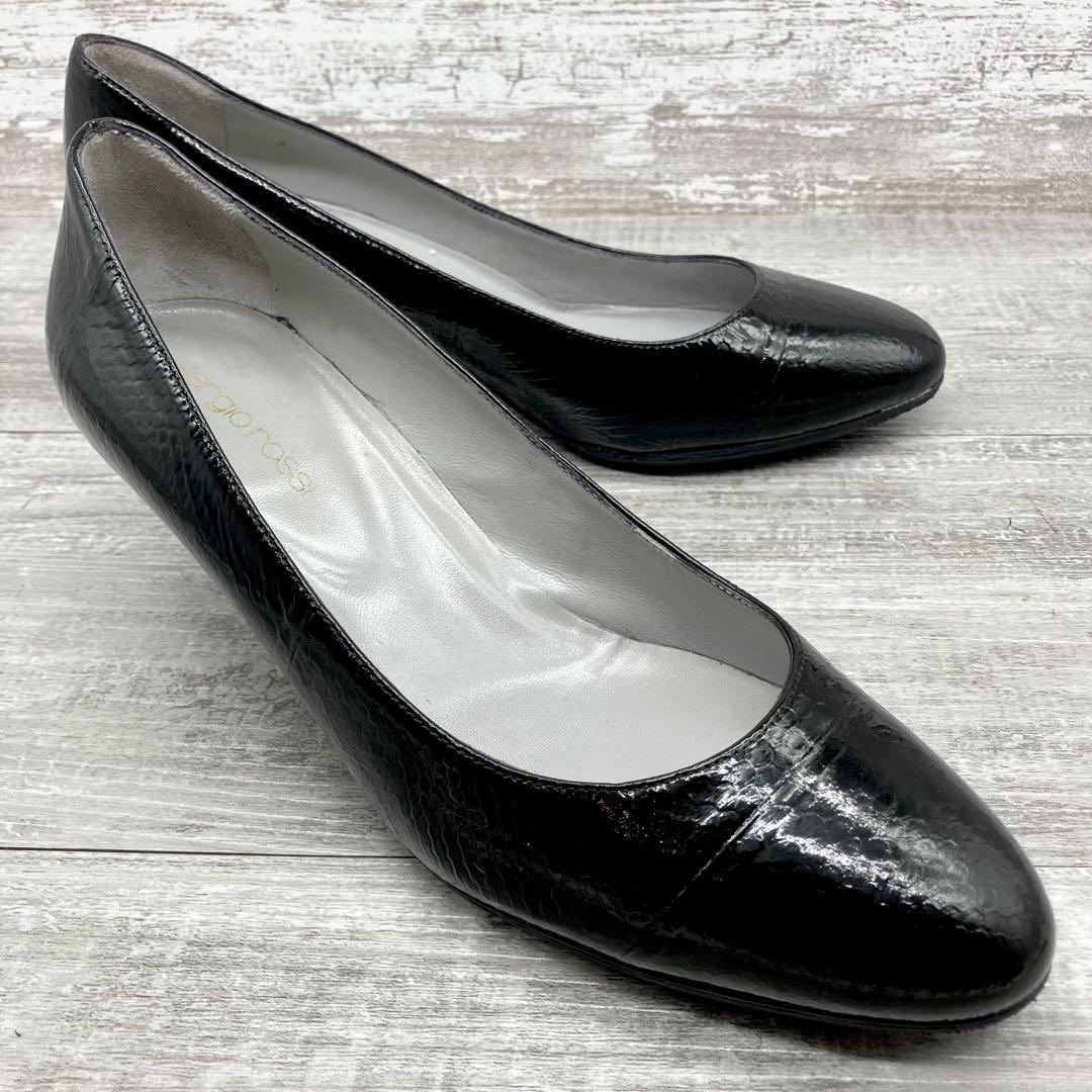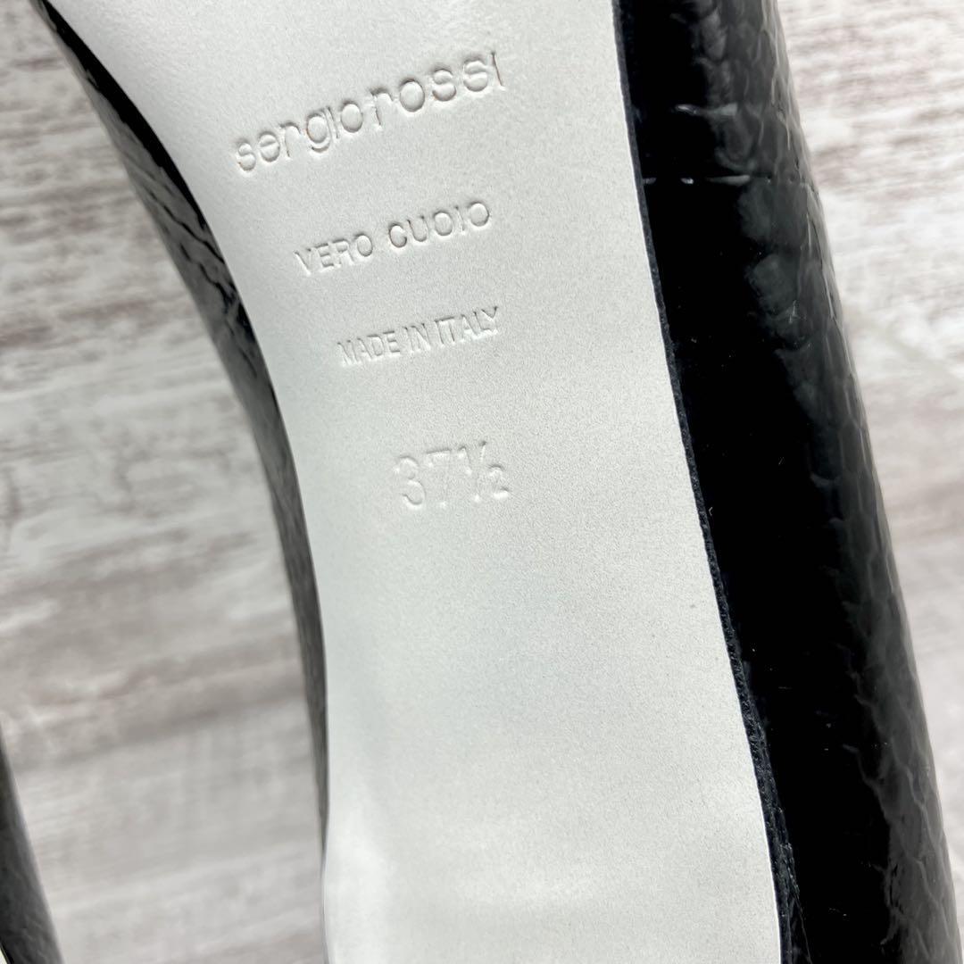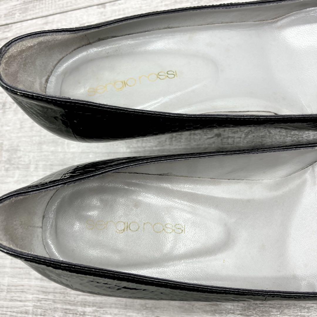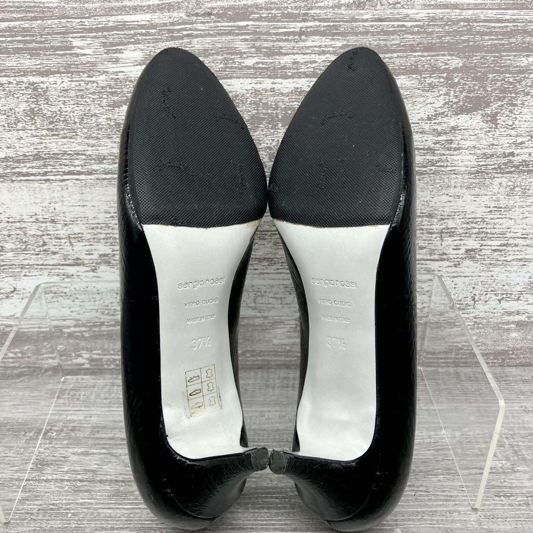 537【美品】Sergio Rossi セルジオロッシ エナメル パンプス 黒 クロコ型押し 37 1/2(24.5cm相当)
