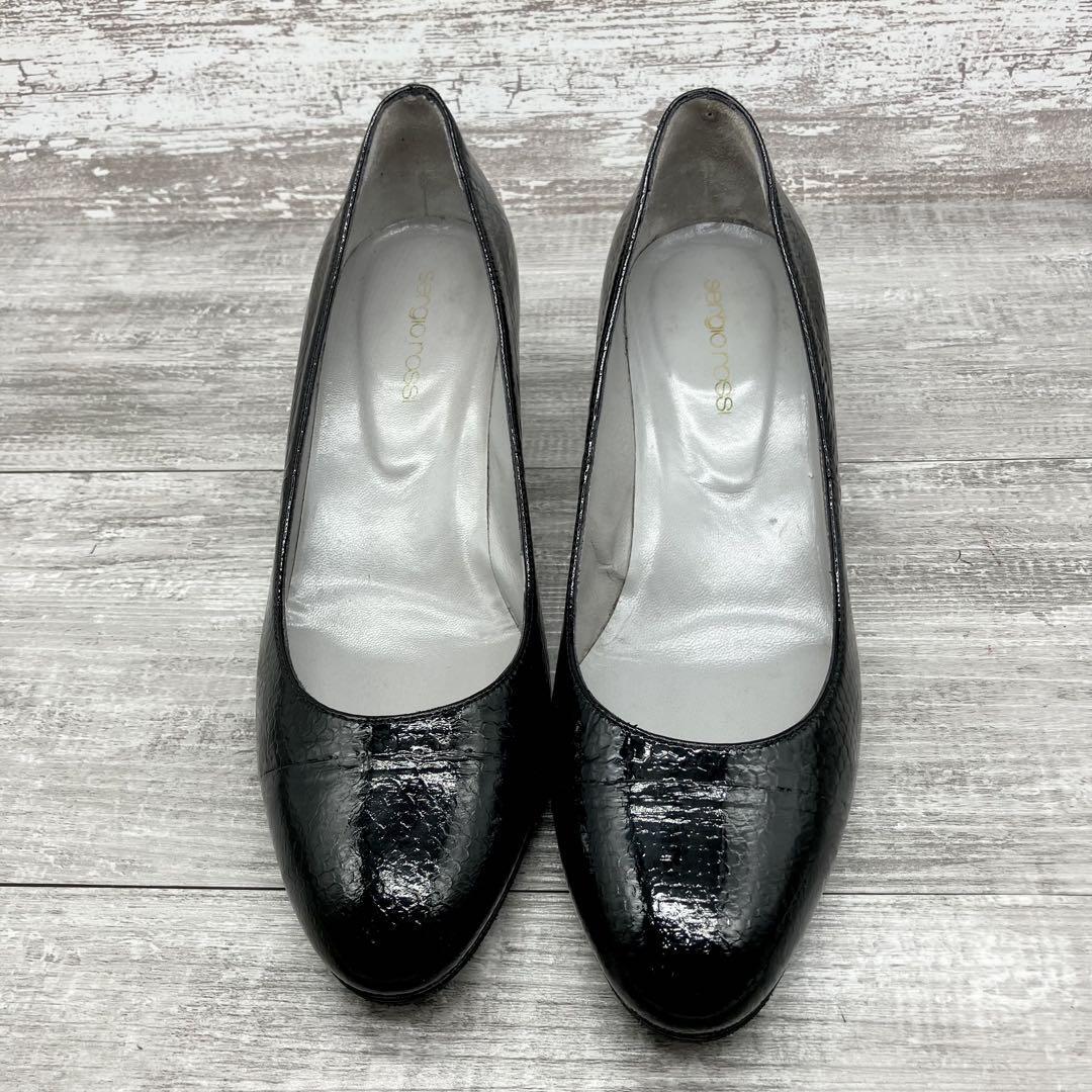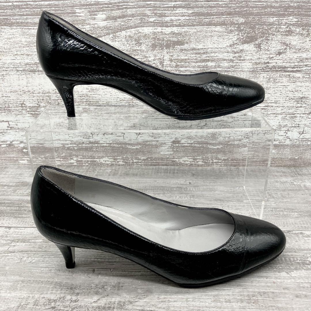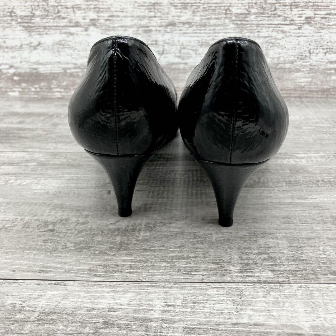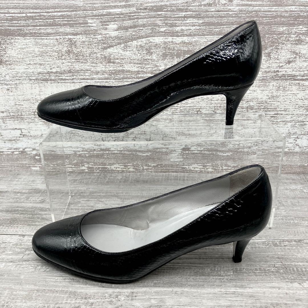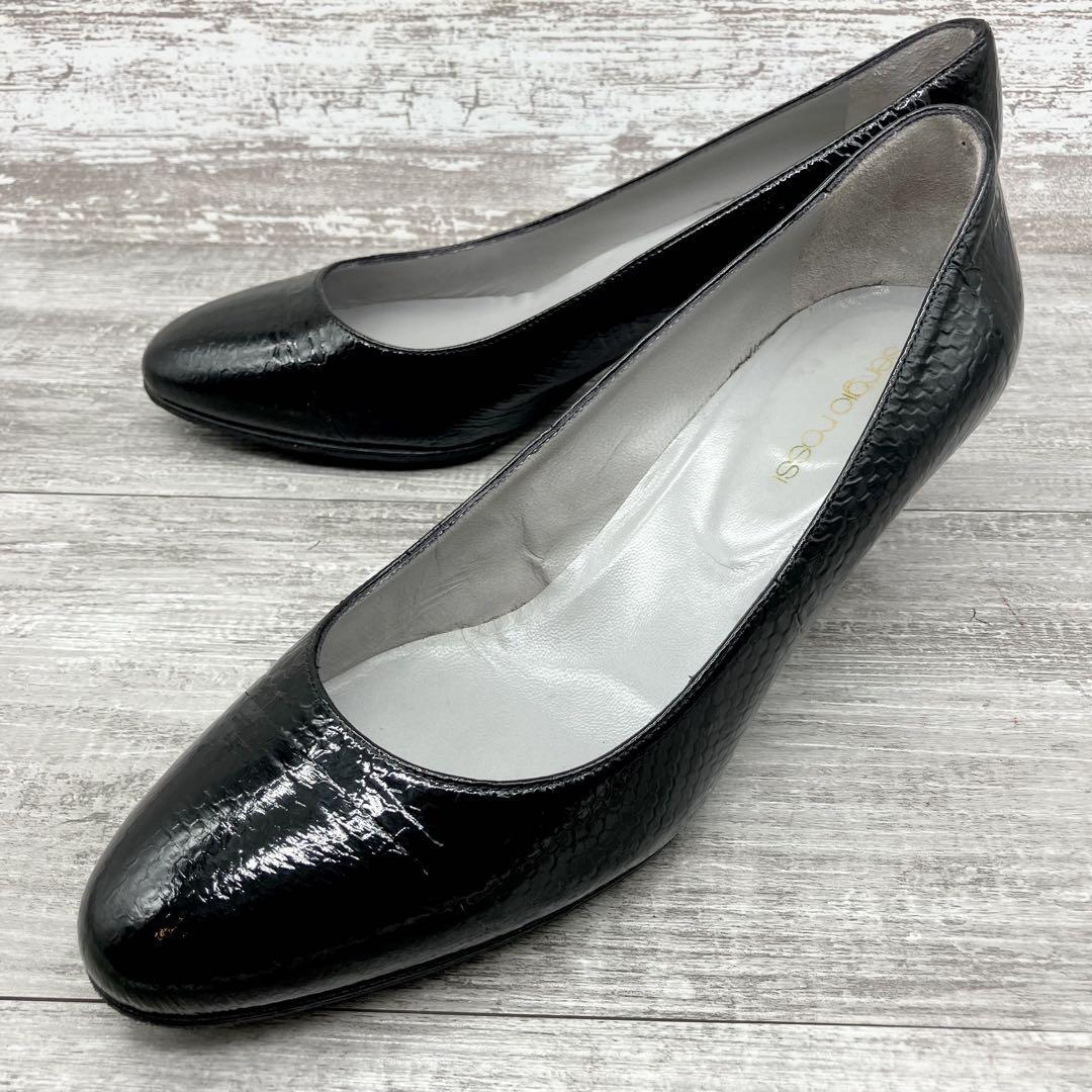 537【美品】Sergio Rossi セルジオロッシ エナメル パンプス 黒 クロコ型押し 37 1/2(24.5cm相当)