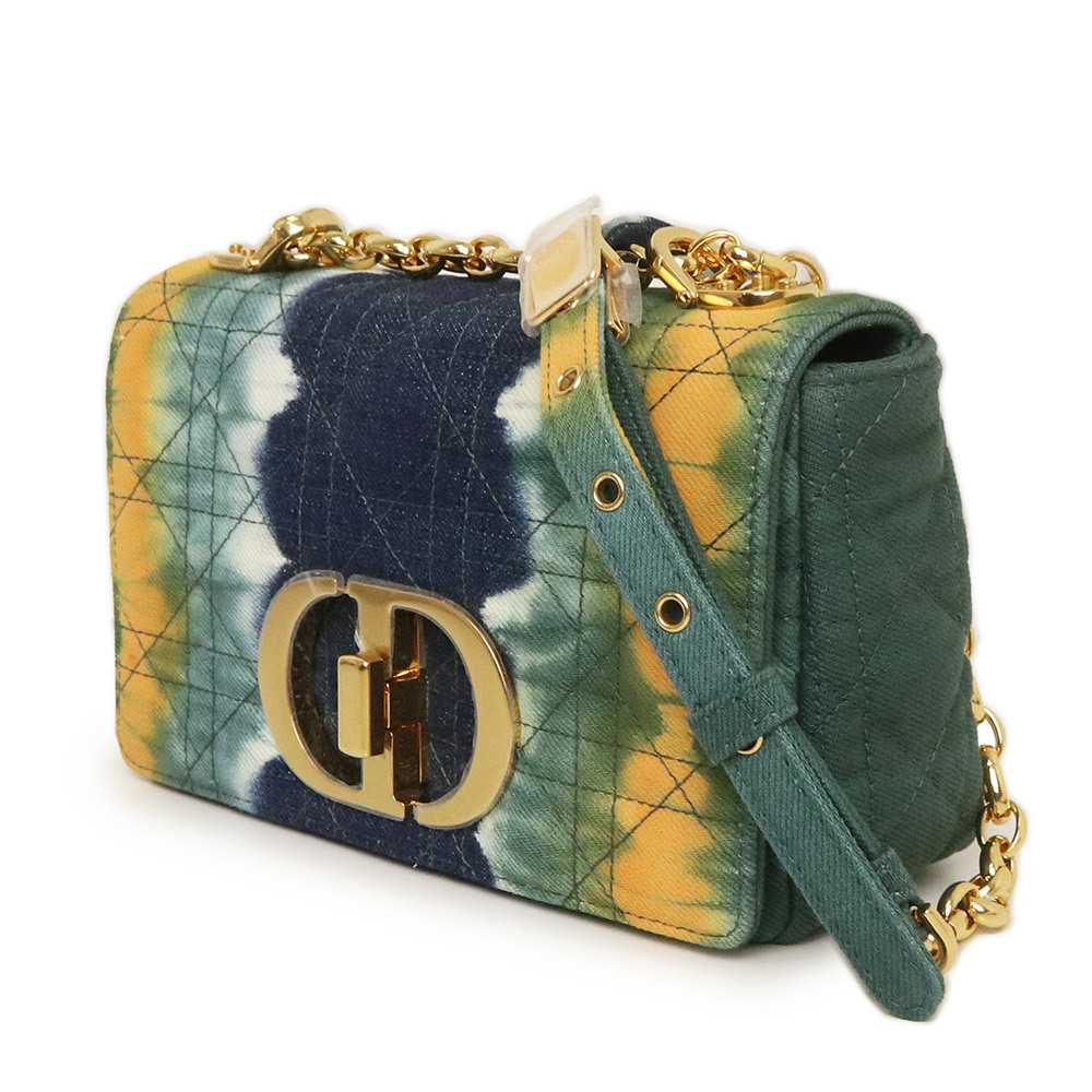 (新品・未使用品)ディオール Dior ミディアム ディオール カロ カナージュ タイダイ チェーン ショルダーバッグ 斜め掛け デニム ブルー