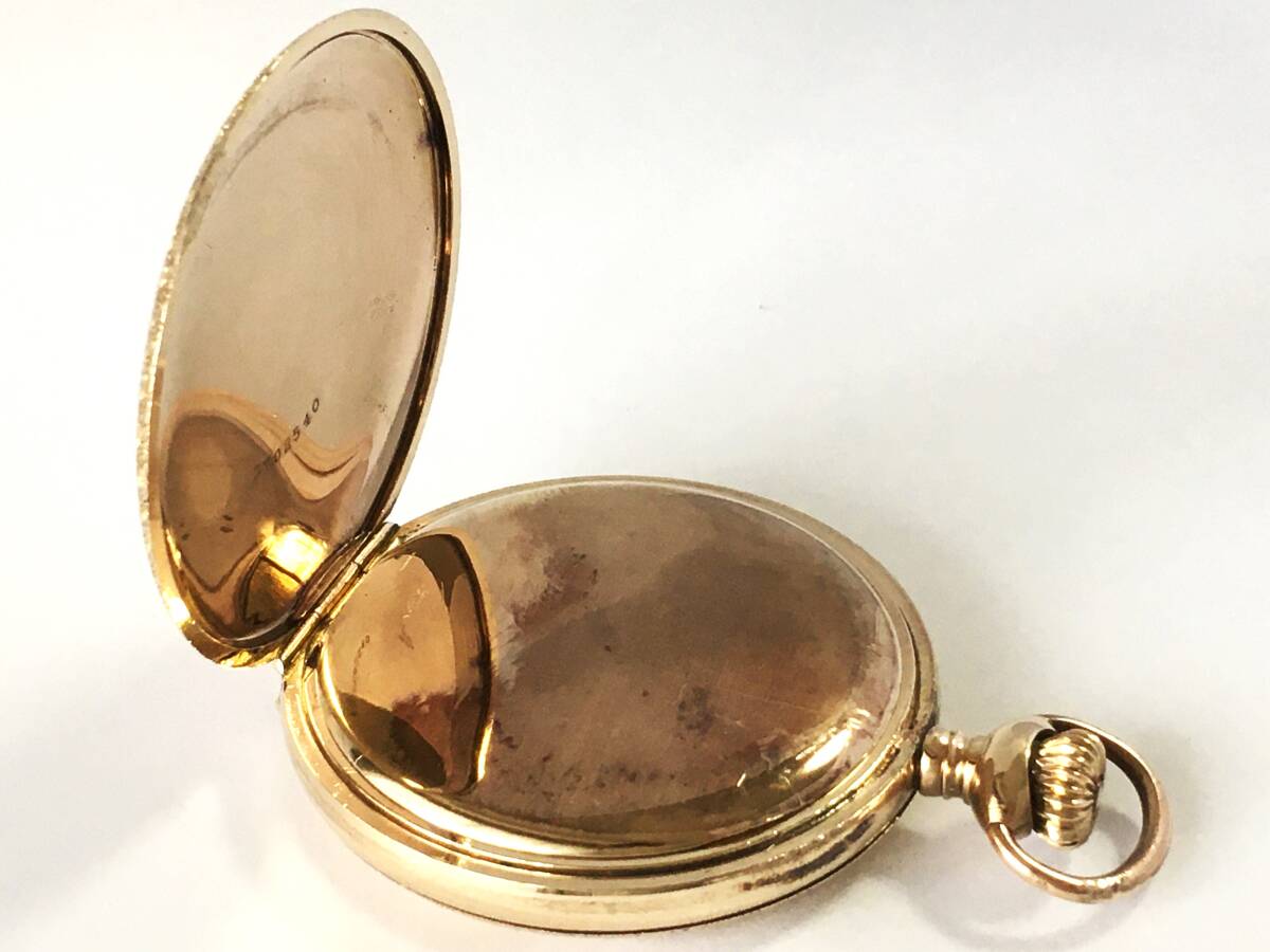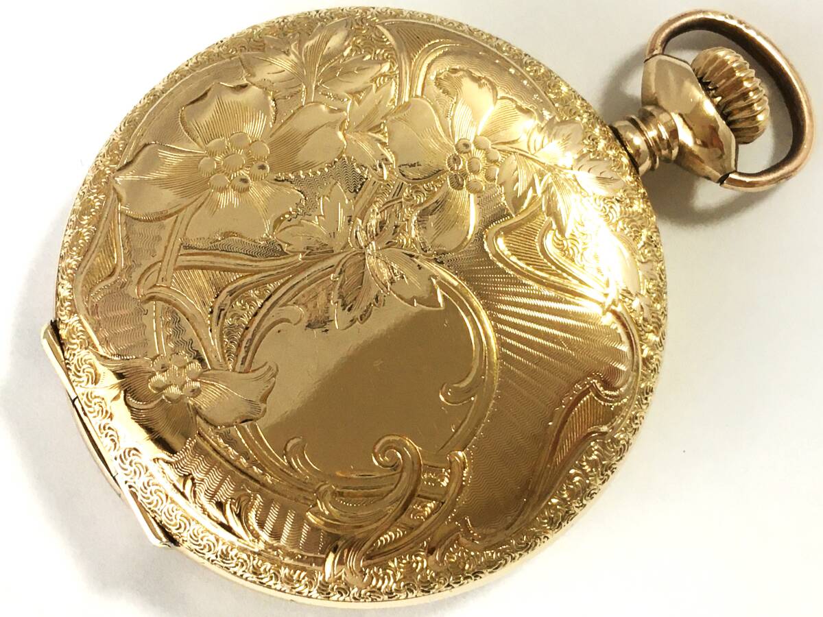 今から113年前の1912年製、イリノイ美彫金フルハンター懐中時計(Gr.219)です。